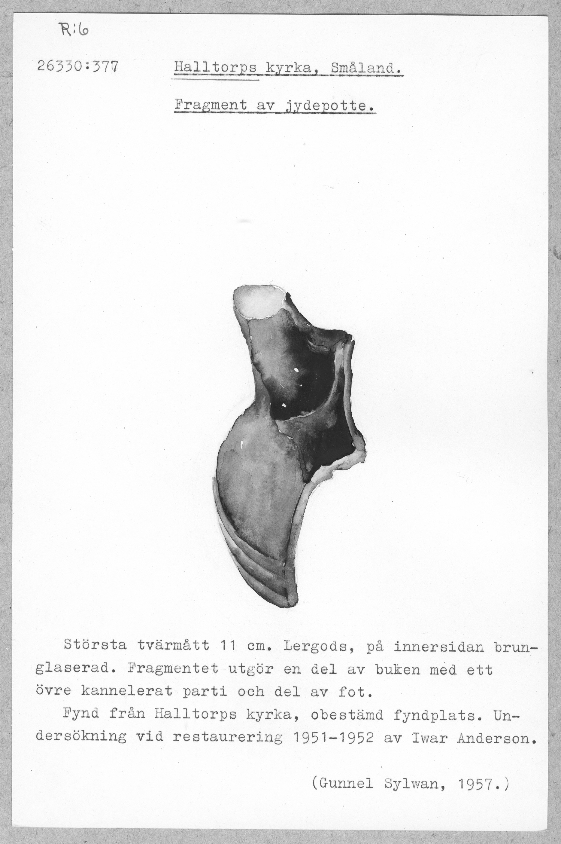 26330:377 \ Småland \ Halltorps kyrka, Småland. \ Fragment av jydepotte \ Medeltid