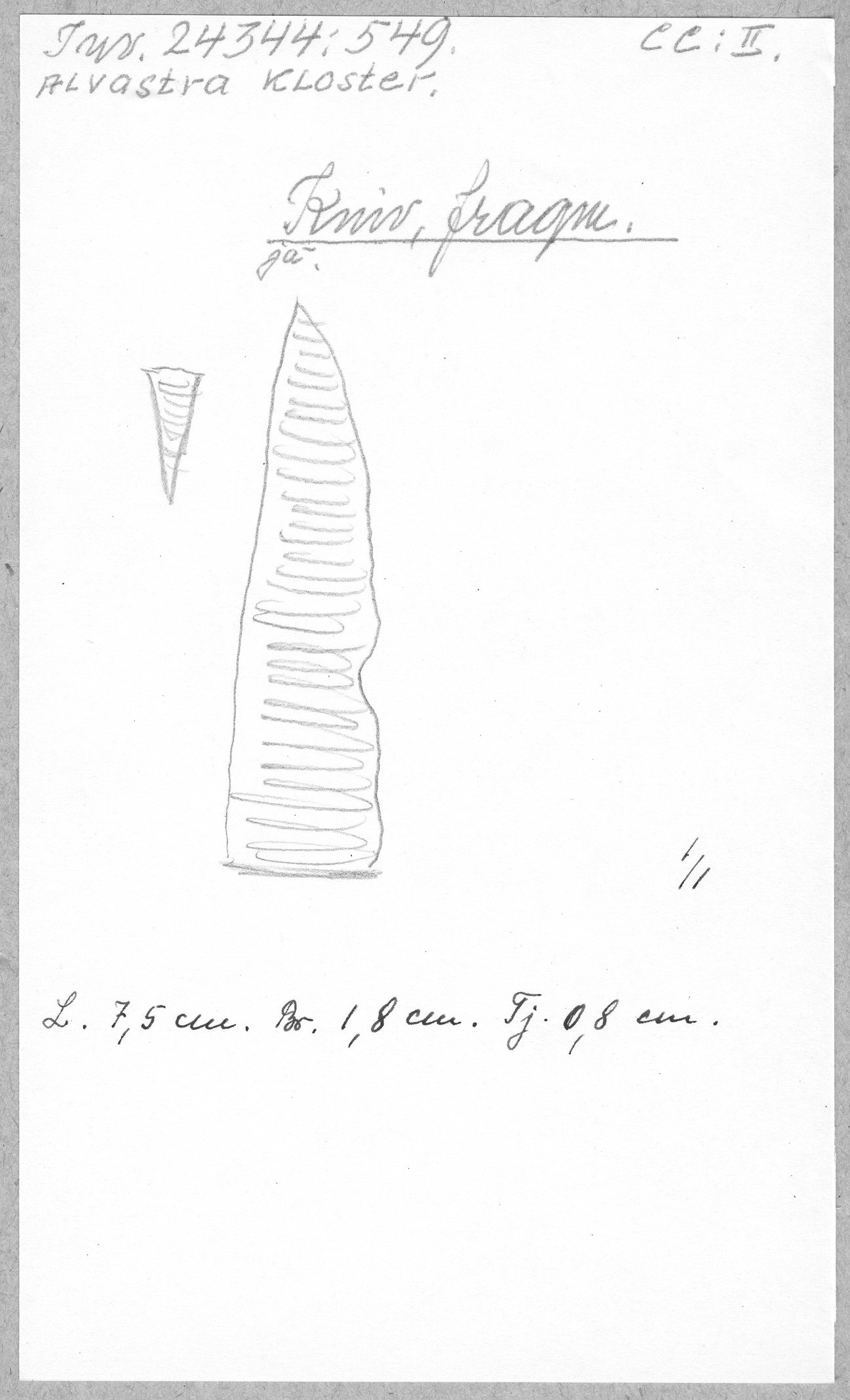 Ög, Västra Tollstad, Alvastra kloster. Kniv, fragm