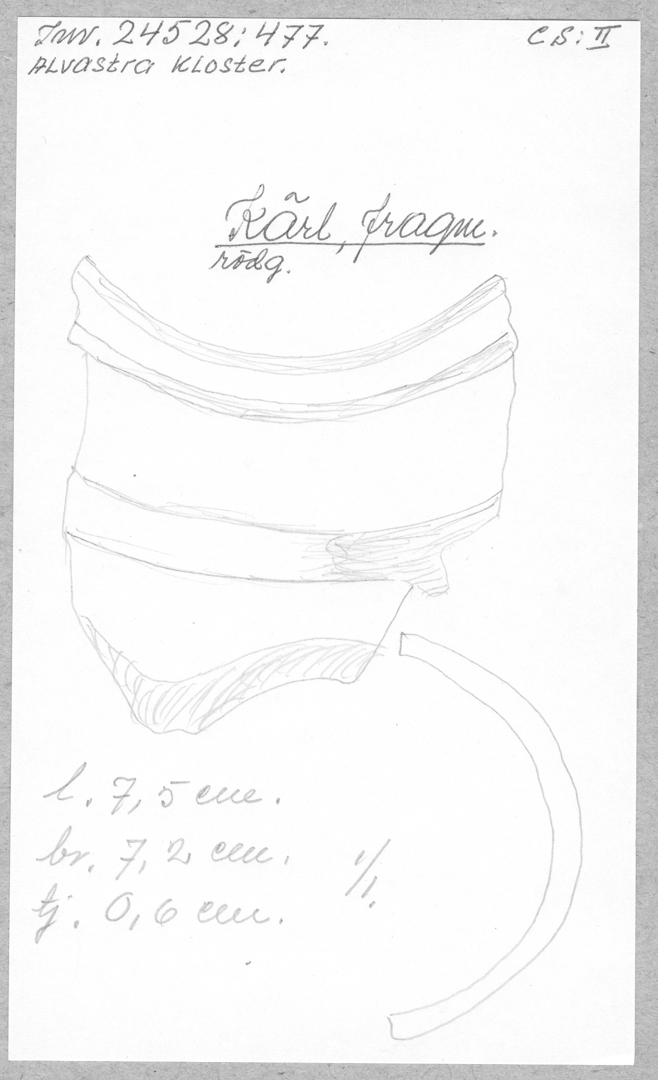 Ög, Västra Tollstad, Alvastra kloster. Kärl, fragm