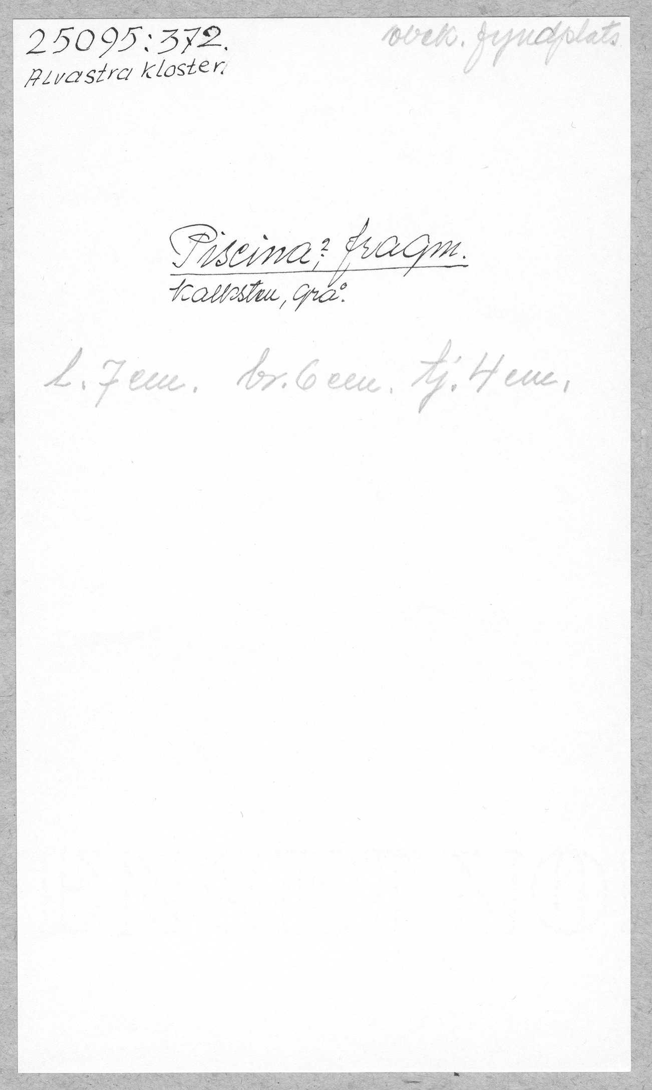 Ög, Västra Tollstad, Alvastra kloster. Piscina? Fragm