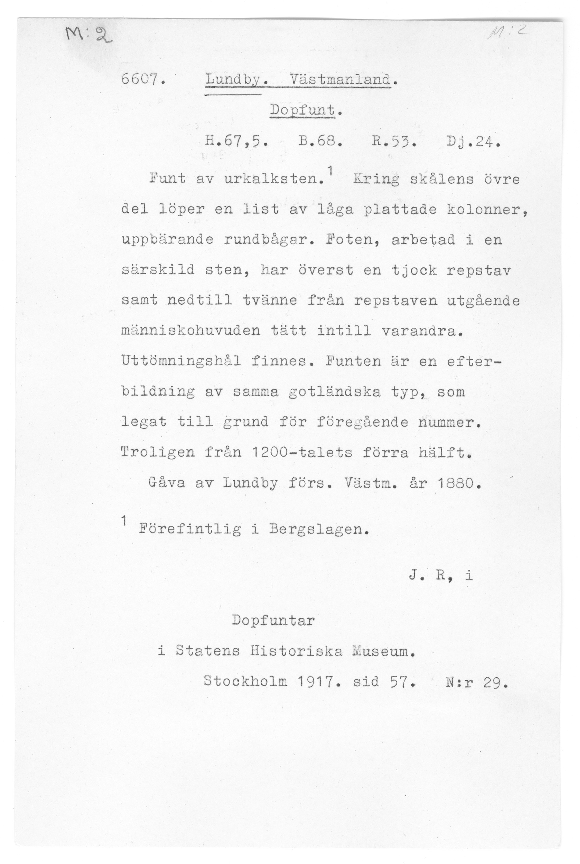 6607: \ Västmanland \ Lundby. Västmanland. \ Dopfunt \ Medeltid