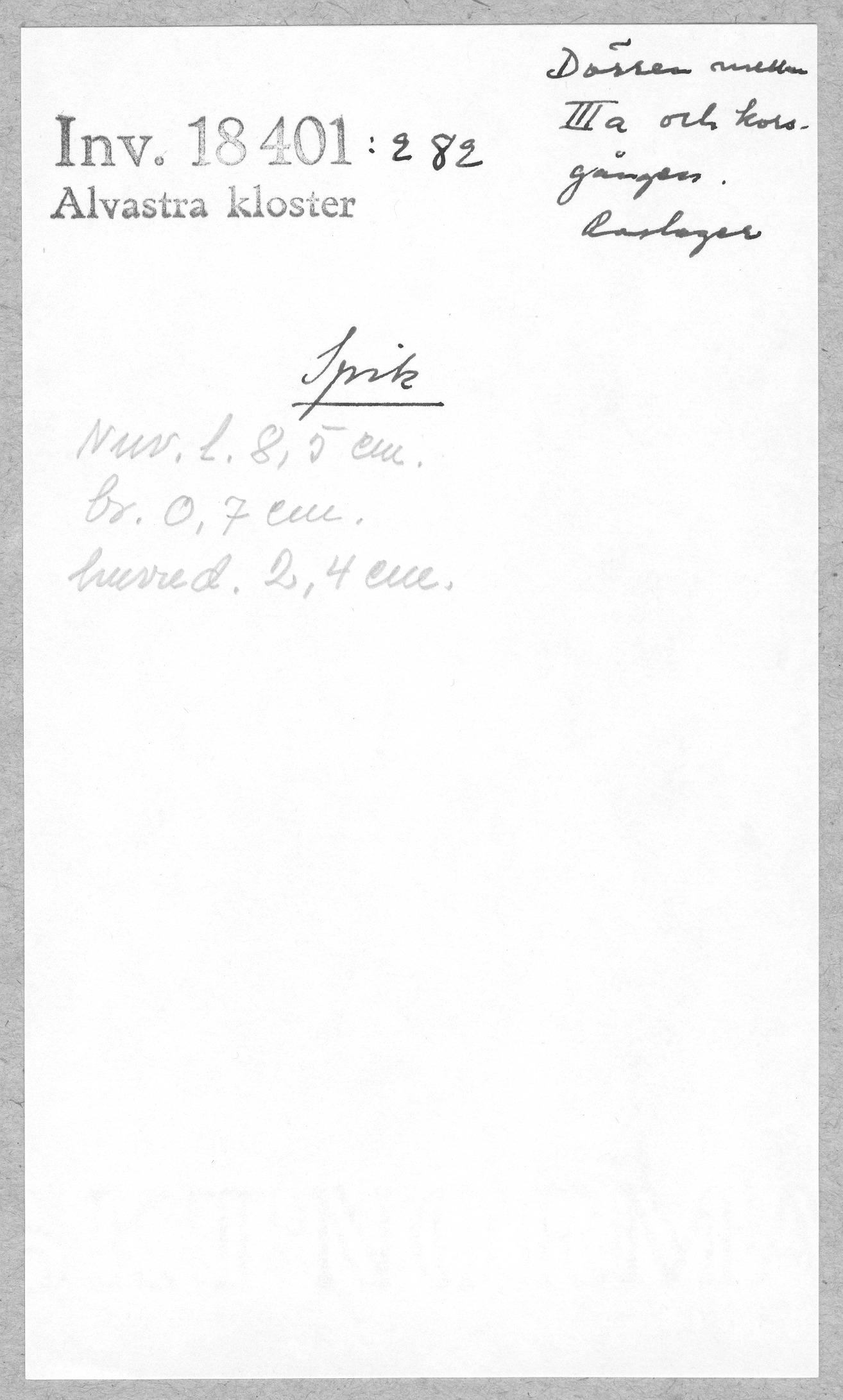 Ög, Västra Tollstad, Alvastra kloster. Spik