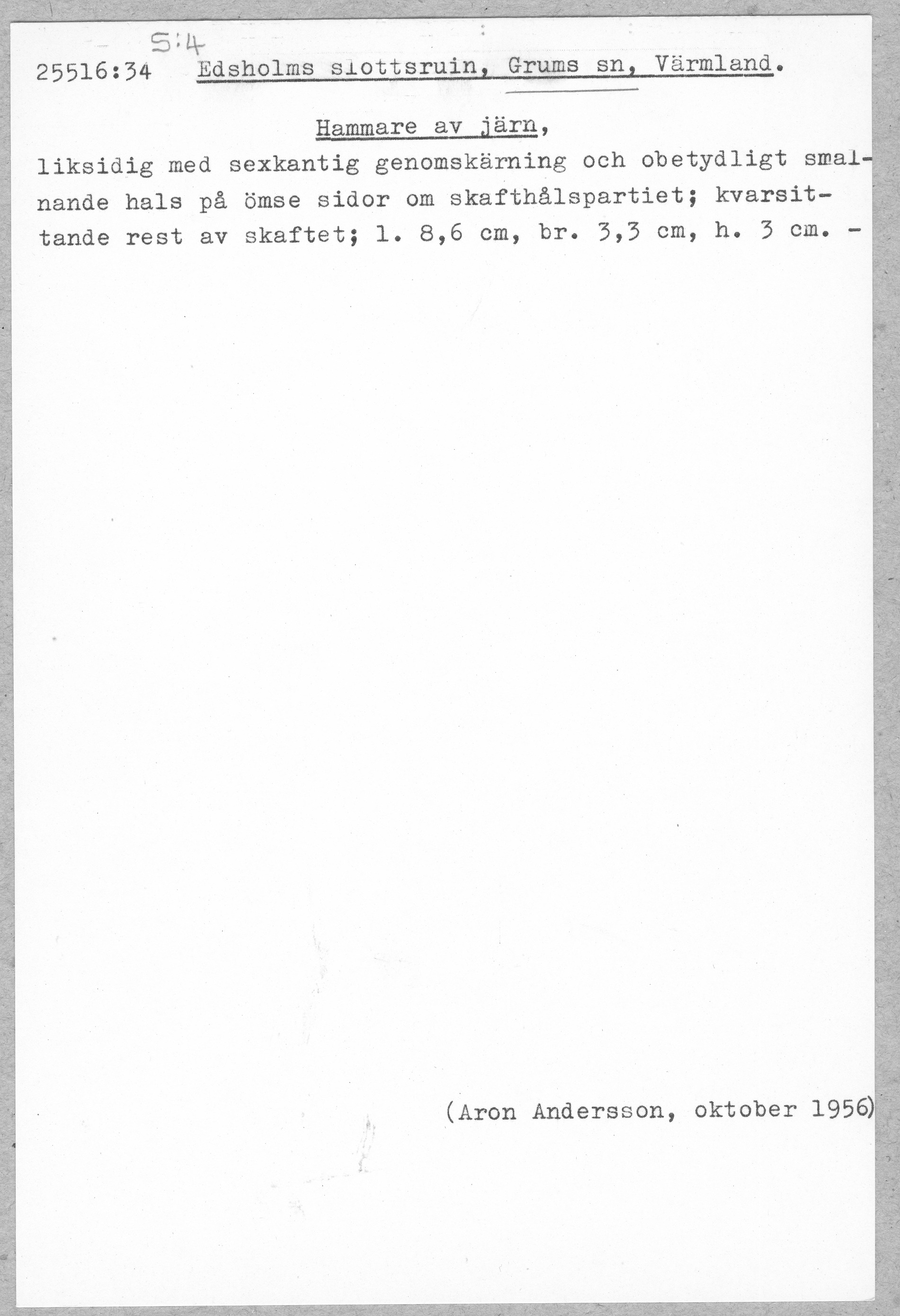 25516:34 \ Värmland \ Edsholms slottsruin, Grums sn, Värmland. \ Hammare av järn, \ Medeltid