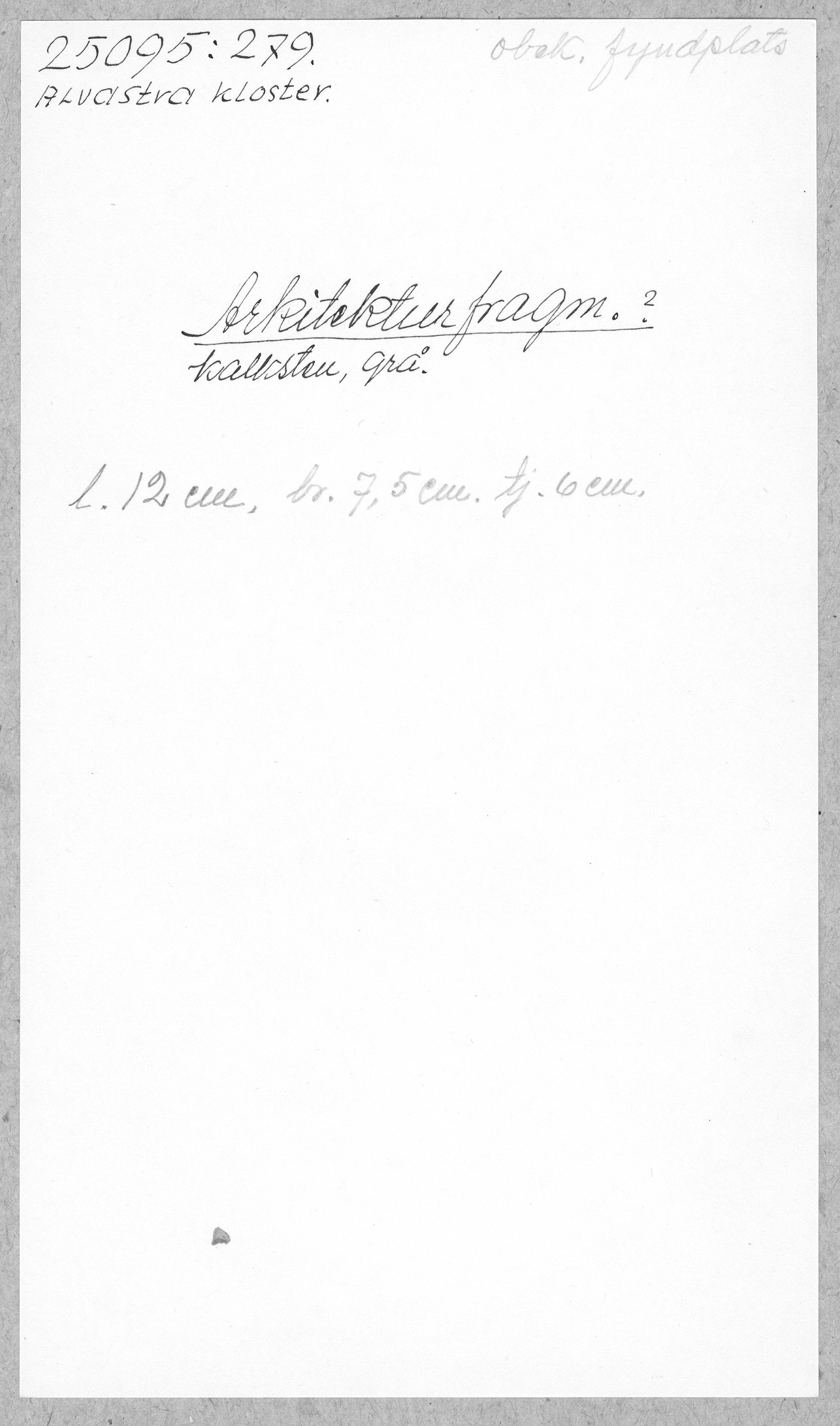 Ög, Västra Tollstad, Alvastra kloster. Arkitekturfragm.?