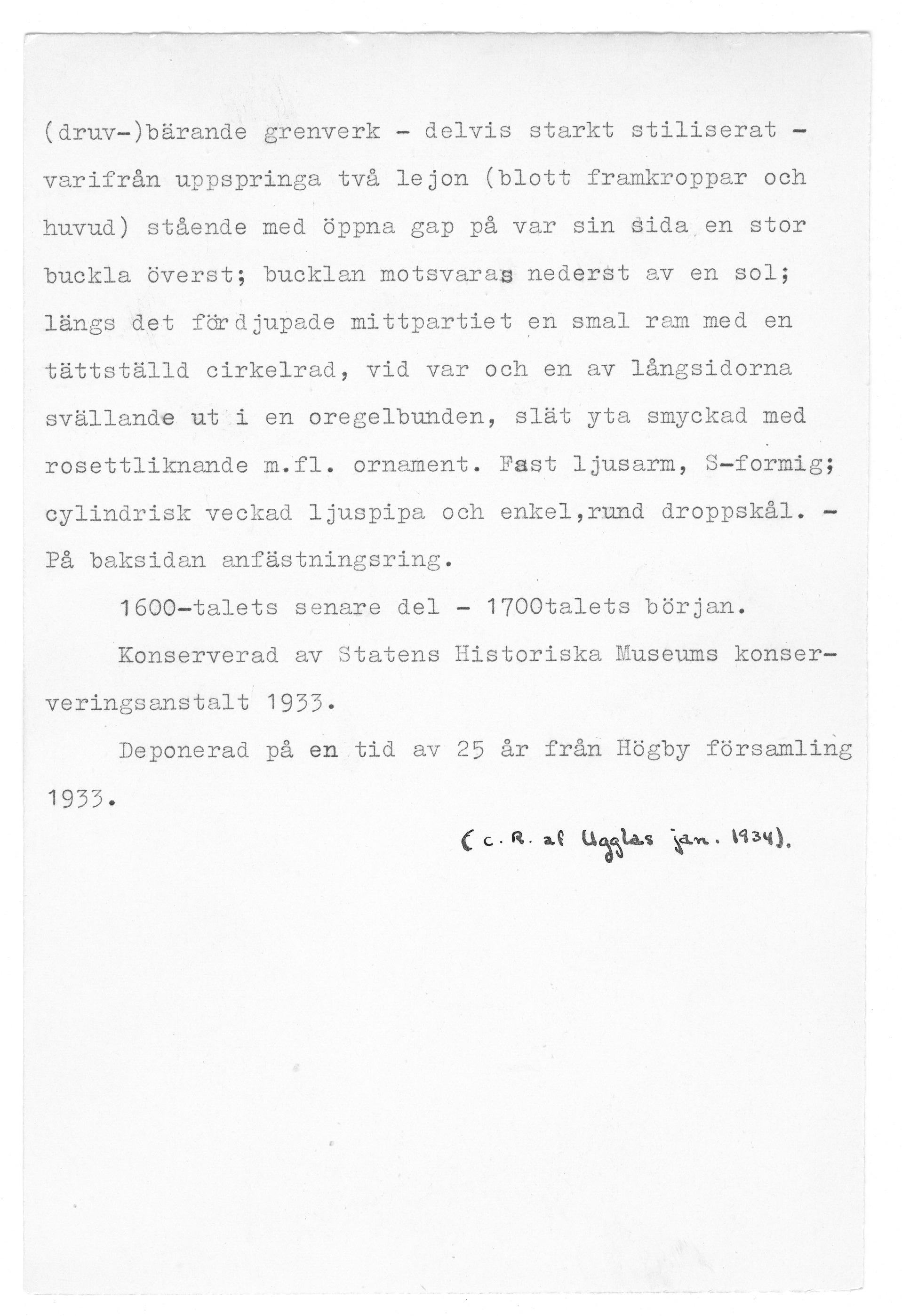 20386:13 \ Östergötland \ Högby kyrka, Östergötland. \ Ljusplåt \ Medeltid
