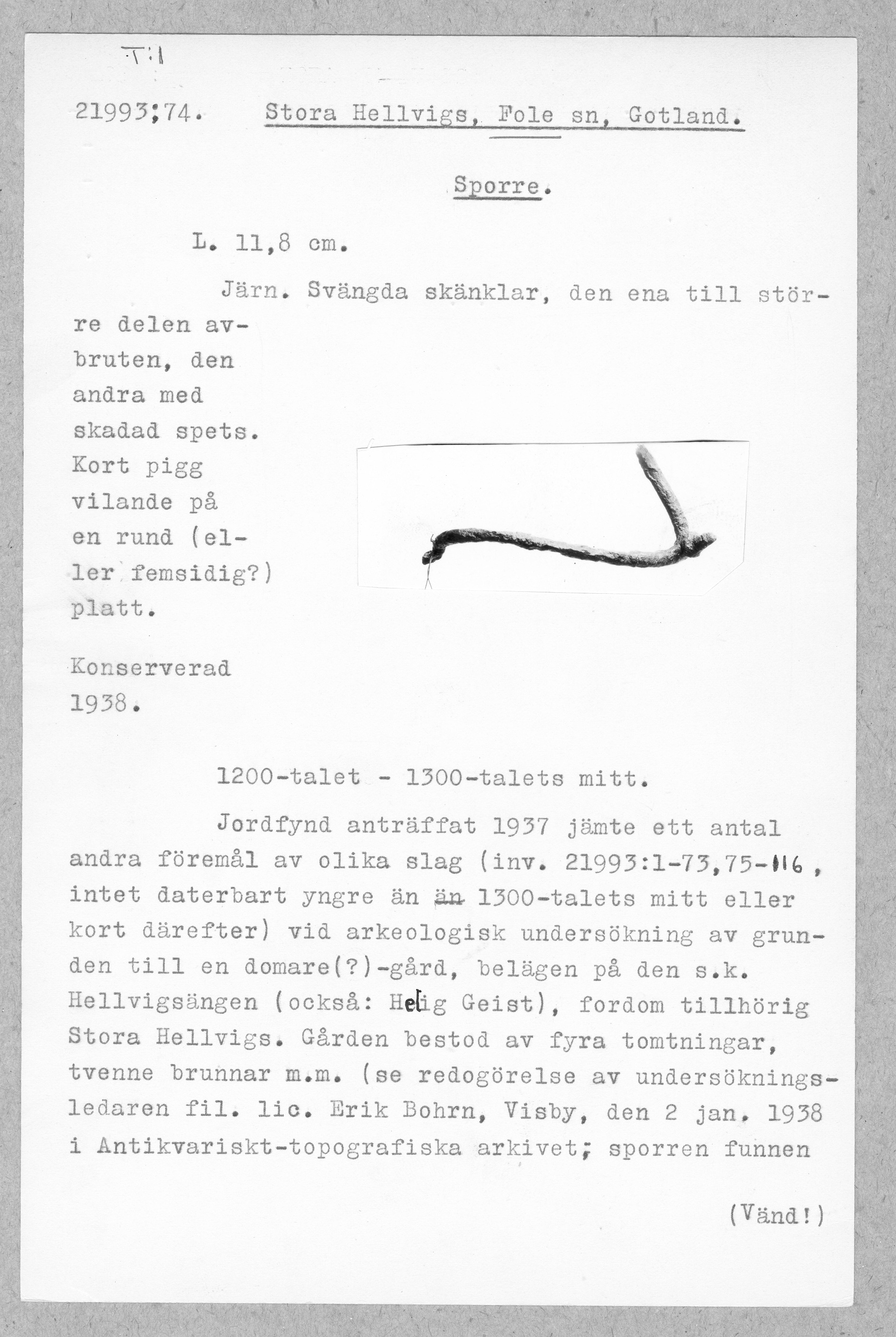 21993:74 \ Gotland \ Stora Hellvigs,Fole sn,Gotland. \ Sporre \ Medeltid