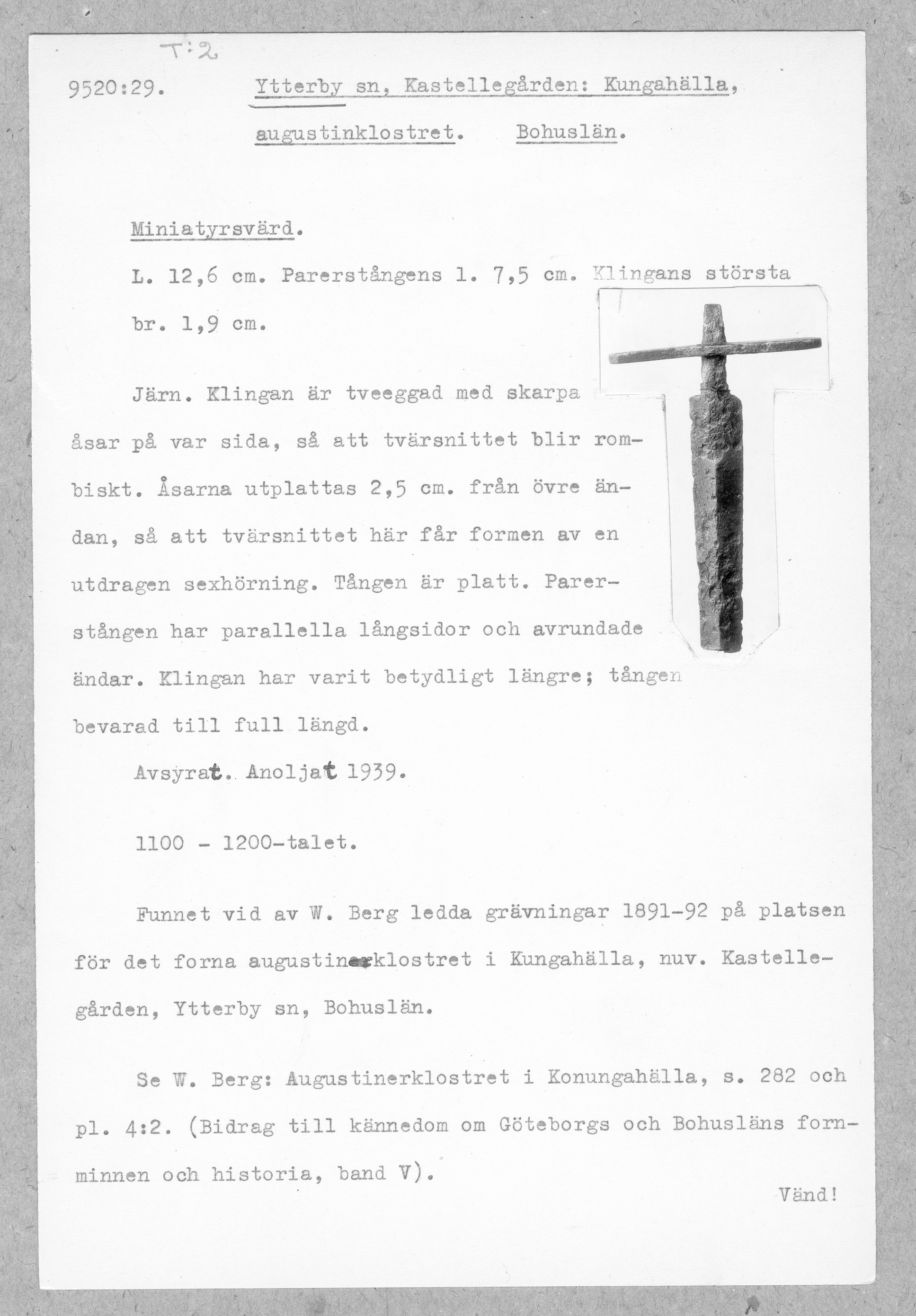 9520:29 \ Bohuslän \ Ytterby sn, Kastellegården:Kungahälla, augustinerklostret, Bohuslän. \ Miniatyrsvärd \ Medeltid