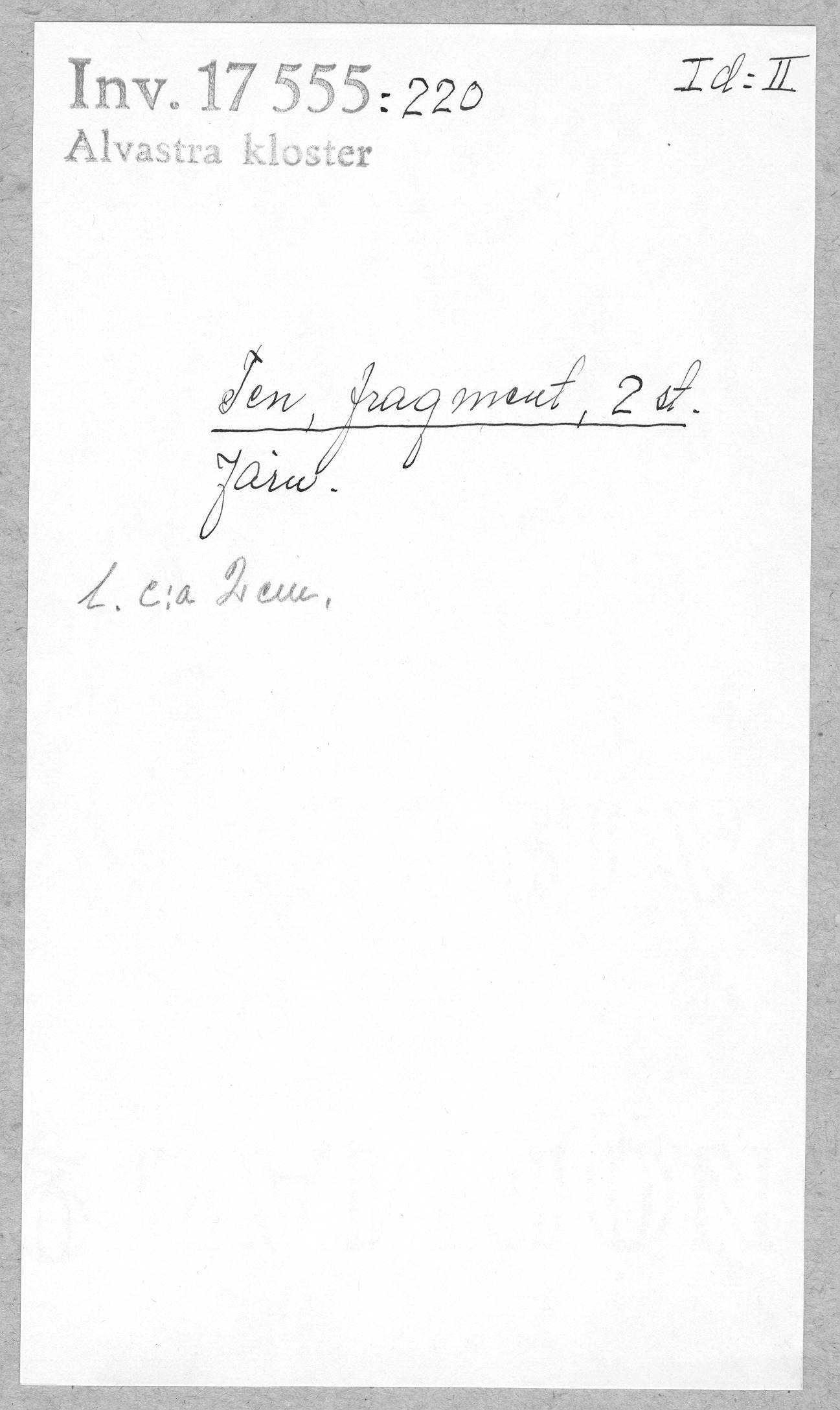 Ög, Västra Tollstad, Alvastra kloster. Ten, fragment, 2 st