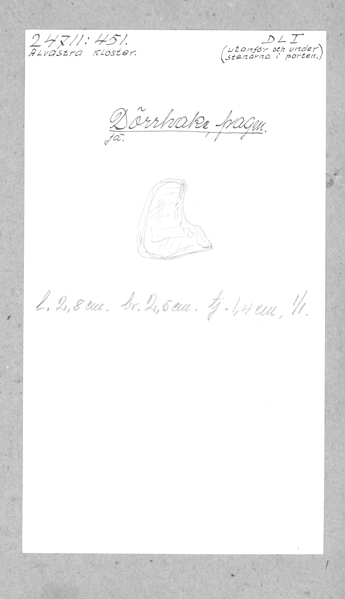 Ög, Västra Tollstad, Alvastra kloster. Dörrhake, fragm