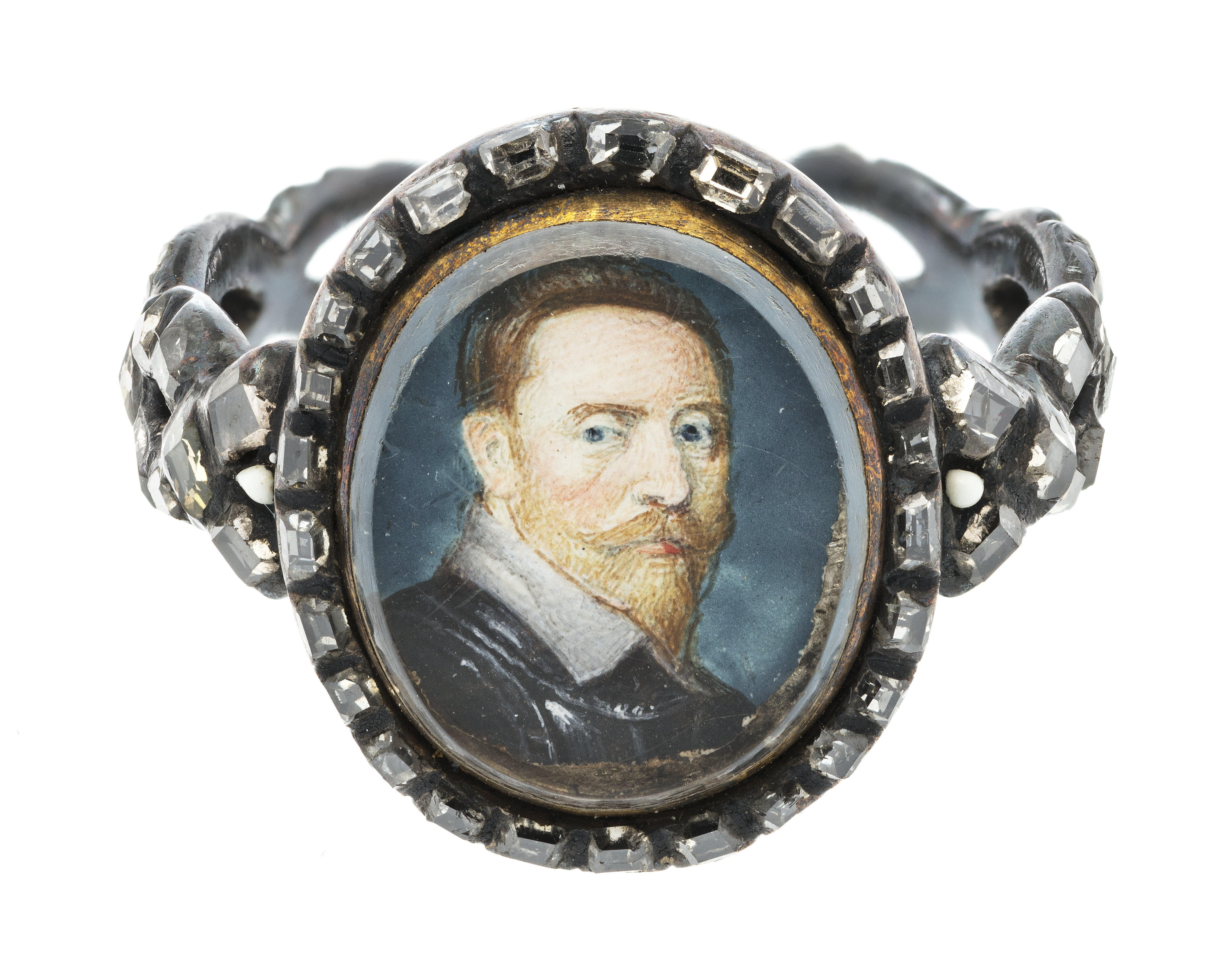 Silverring med miniatyrporträtt av Gustav II Adolf, 1600-tal.