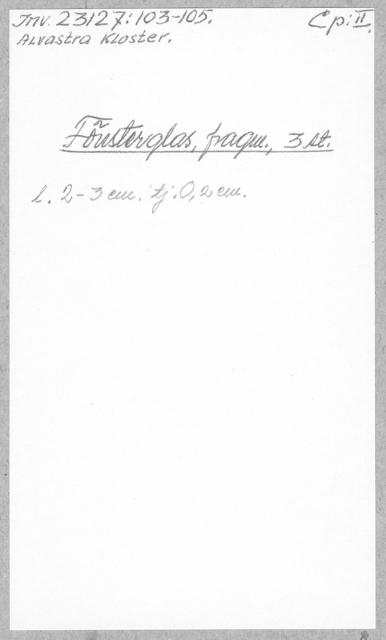 Ög, Västra Tollstad, Alvastra kloster. Fönsterglas, fragm. 3 st
