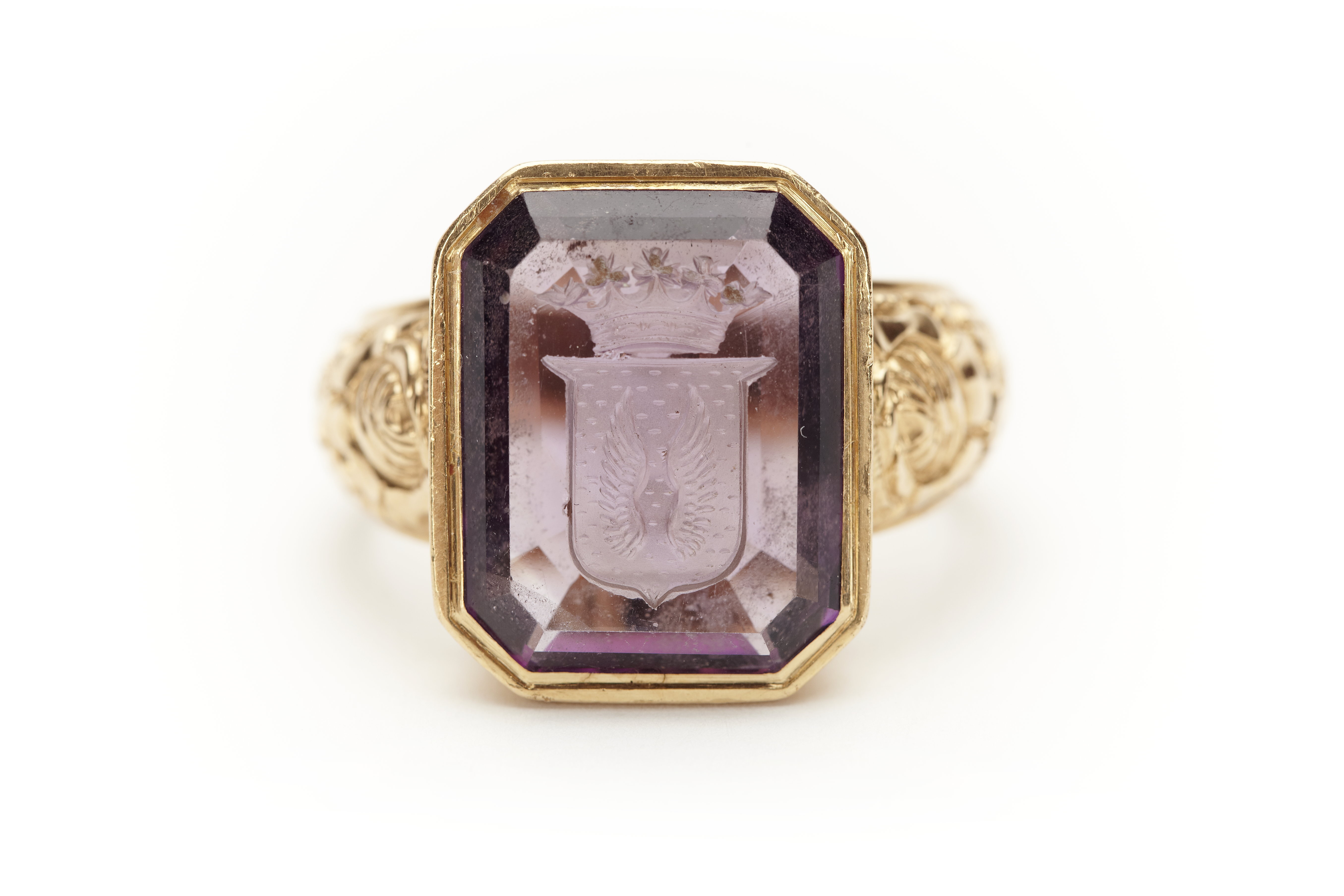 Sigillring av guld och ametist med Lilla Brahevapnet.