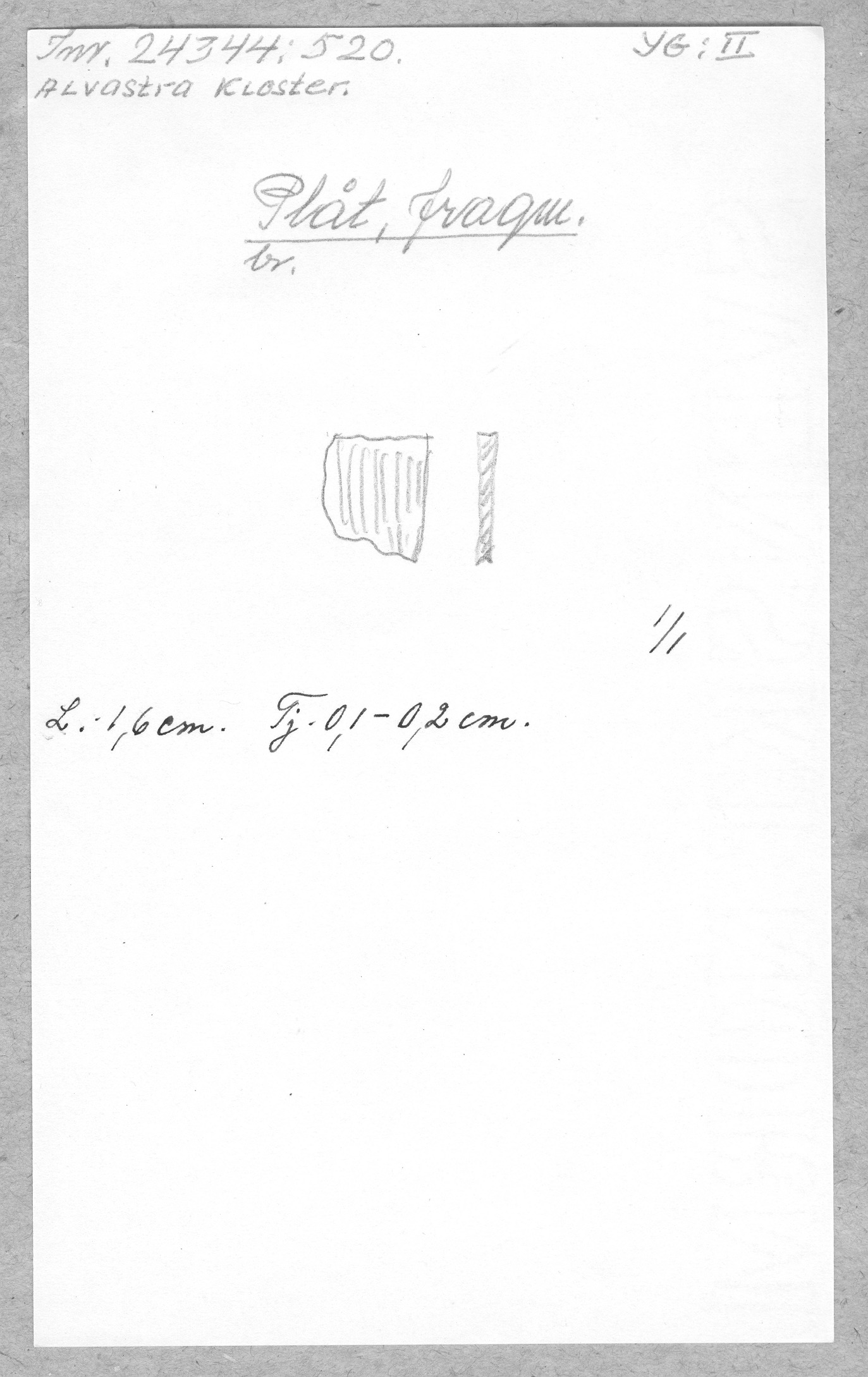 Ög, Västra Tollstad, Alvastra kloster. Plåt, fragm