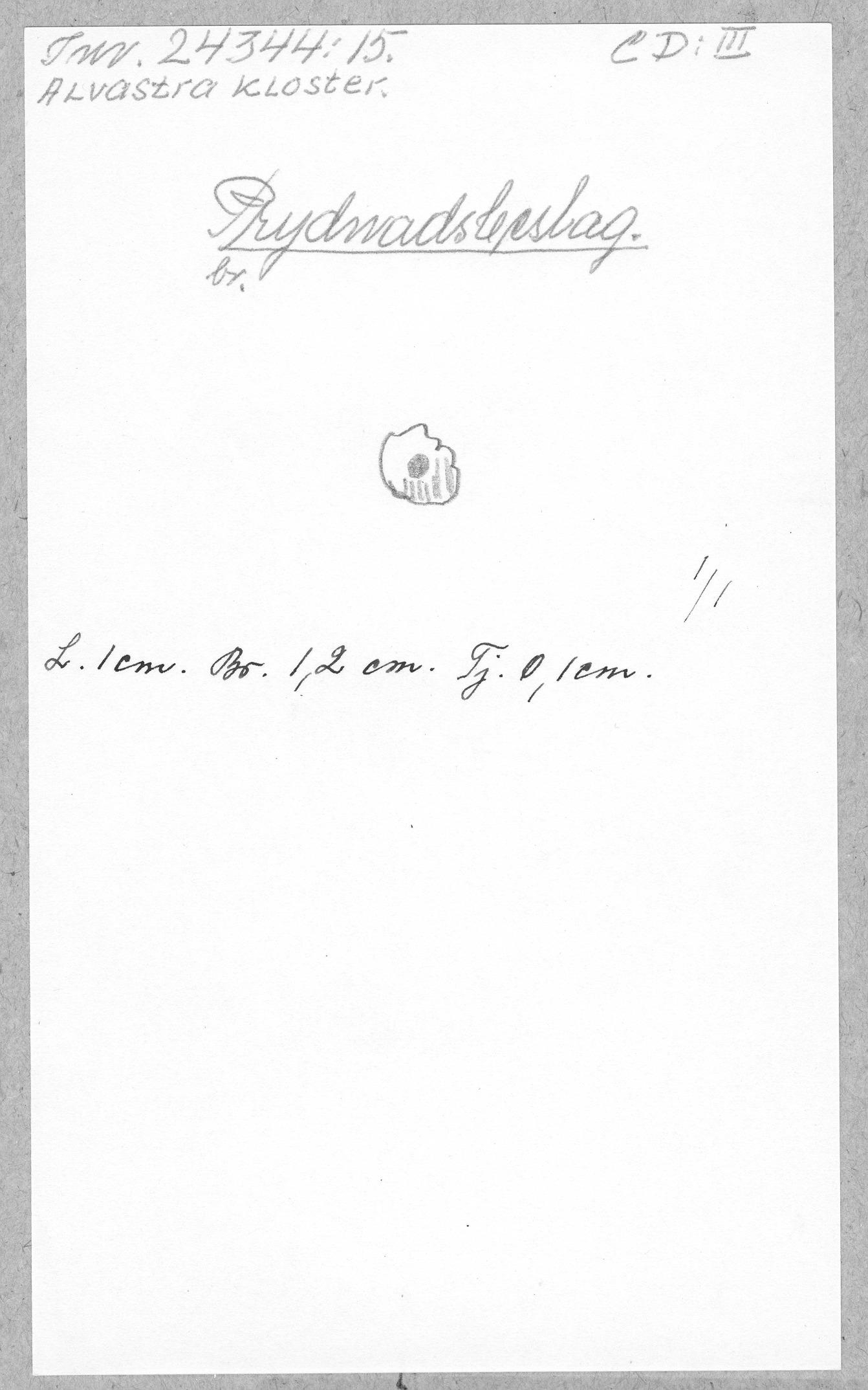 Ög, Västra Tollstad, Alvastra kloster. Prydnadsbeslag