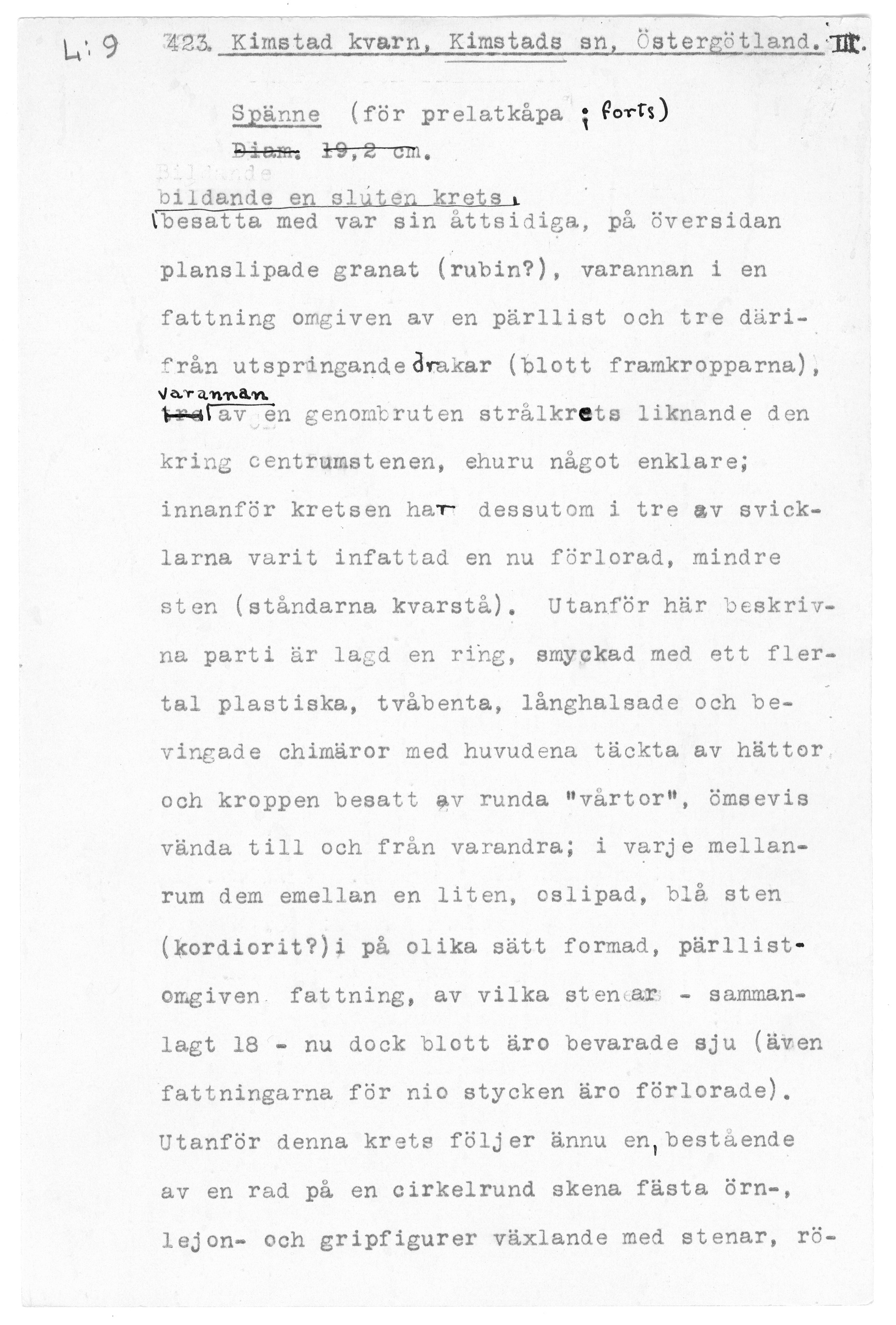 423: \ Östergötland \ Kimstads kvarn, Kimstads sn, Östergötland. \ Spänne (för prelatkåpa; forts) \ Medeltid