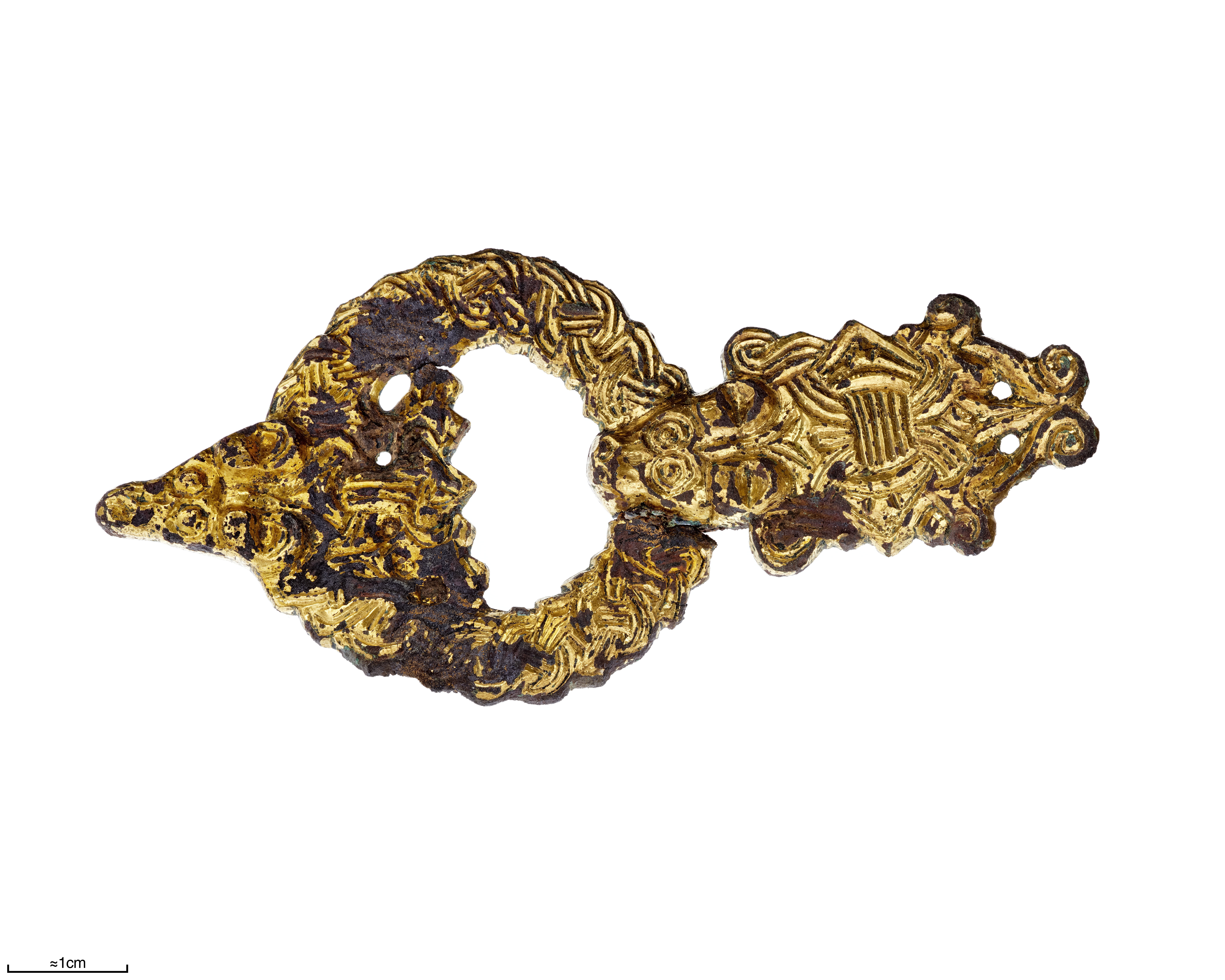 Ringspänne i borrestil av förgylld brons.