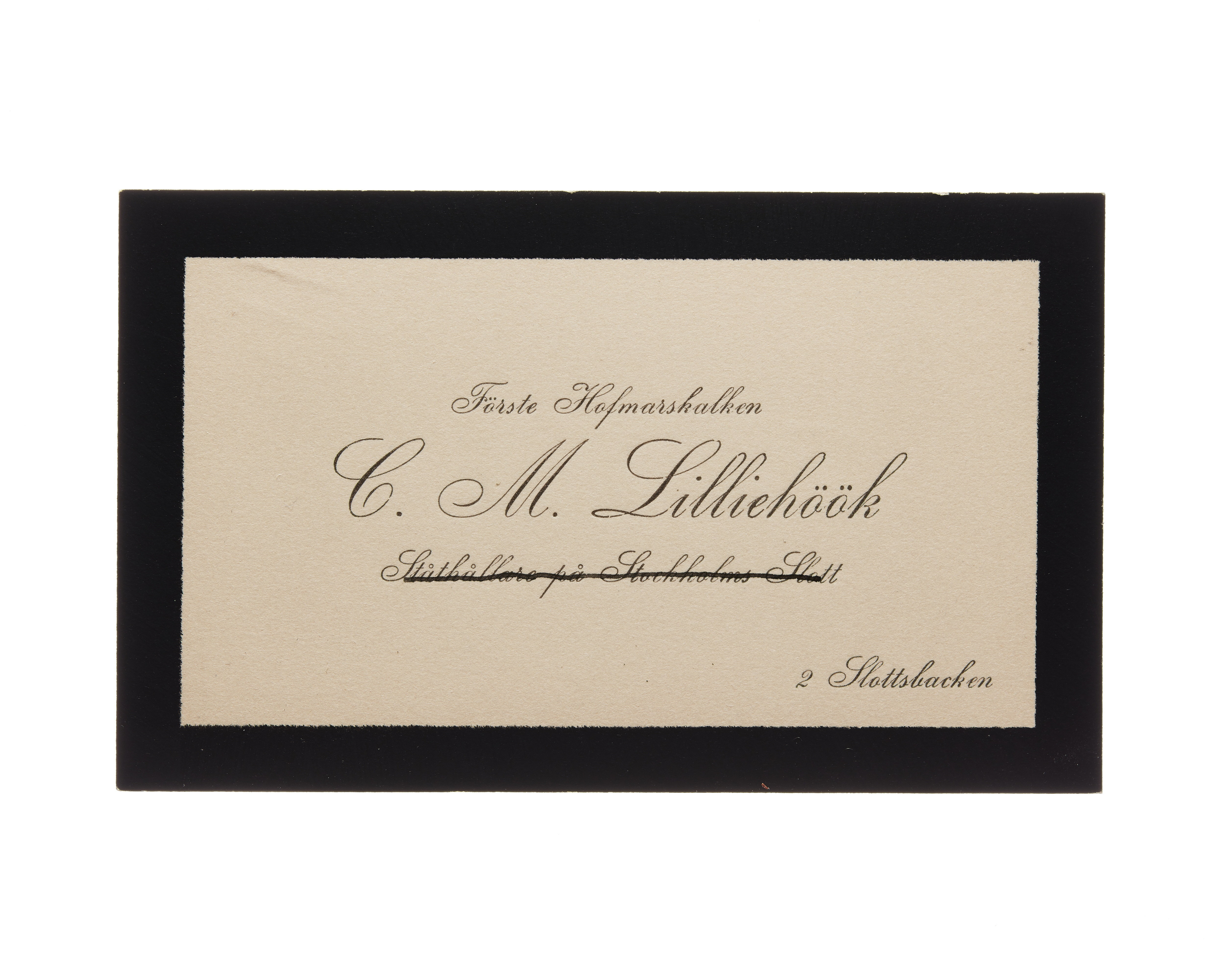 Visitkort från Förste Hovmarskalken C. M. Lilliehöök,.