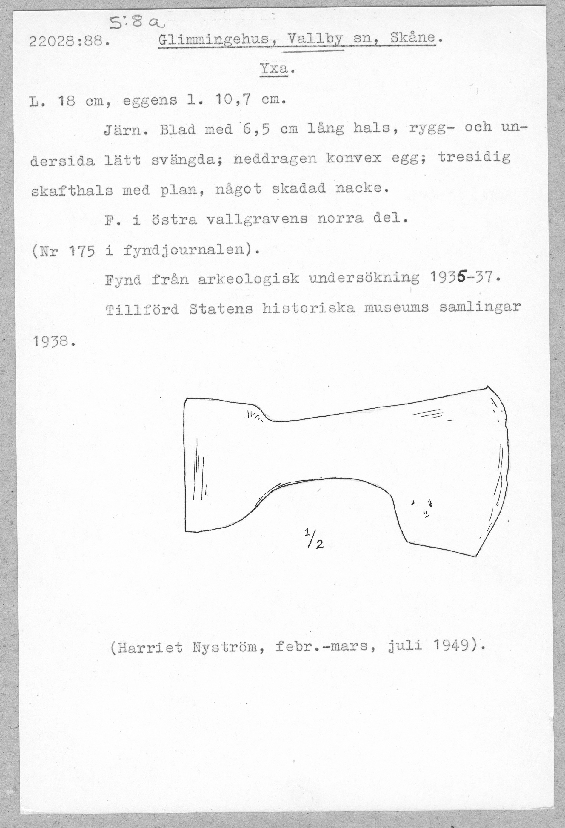 22028:88 \ Skåne \ Glimmingehus, Vallby sn, Skåne. \ Yxa \ Medeltid