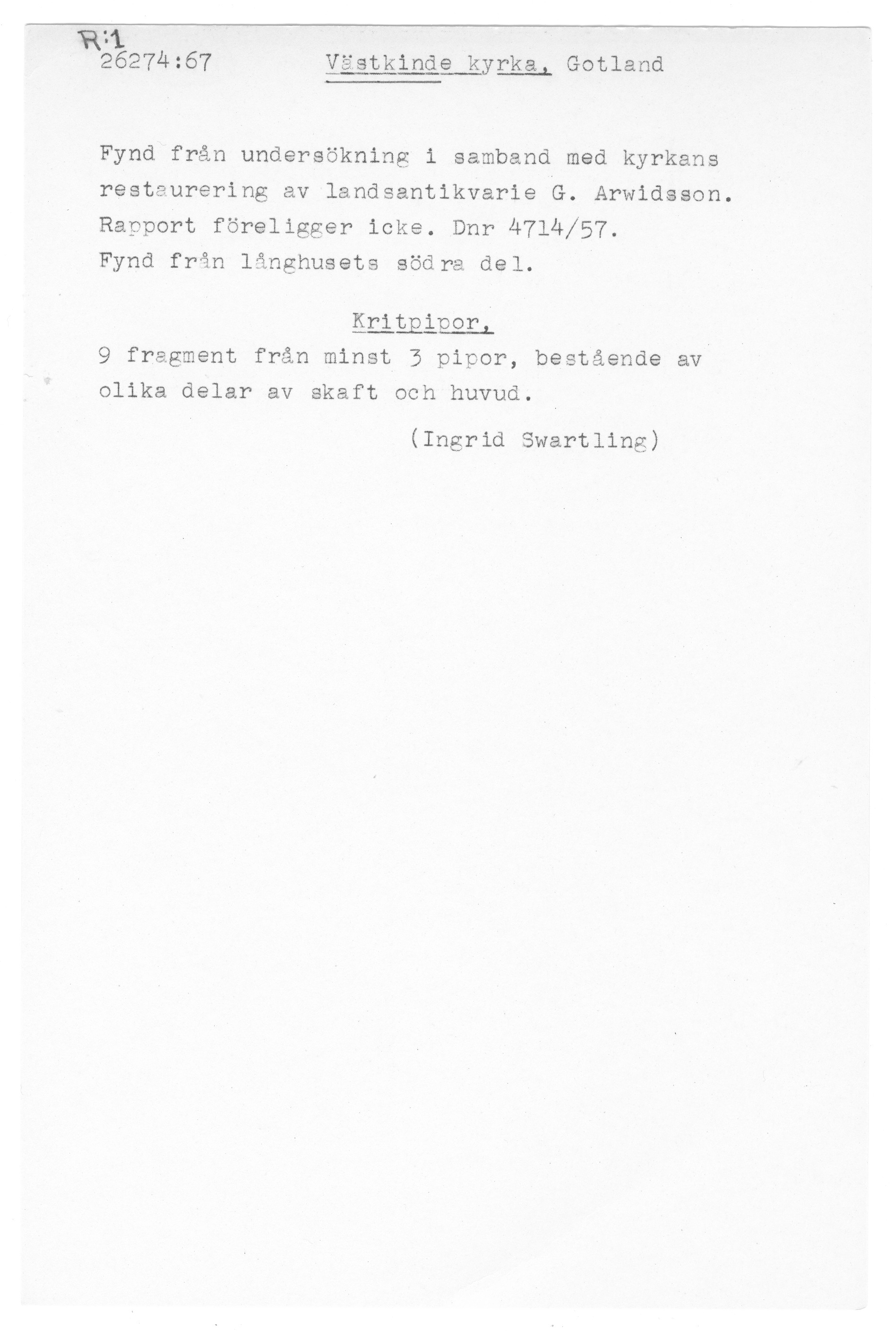 26274:67 \ Gotland \ Västkinde kyrka, Gotland \ Kritpipor \ Medeltid