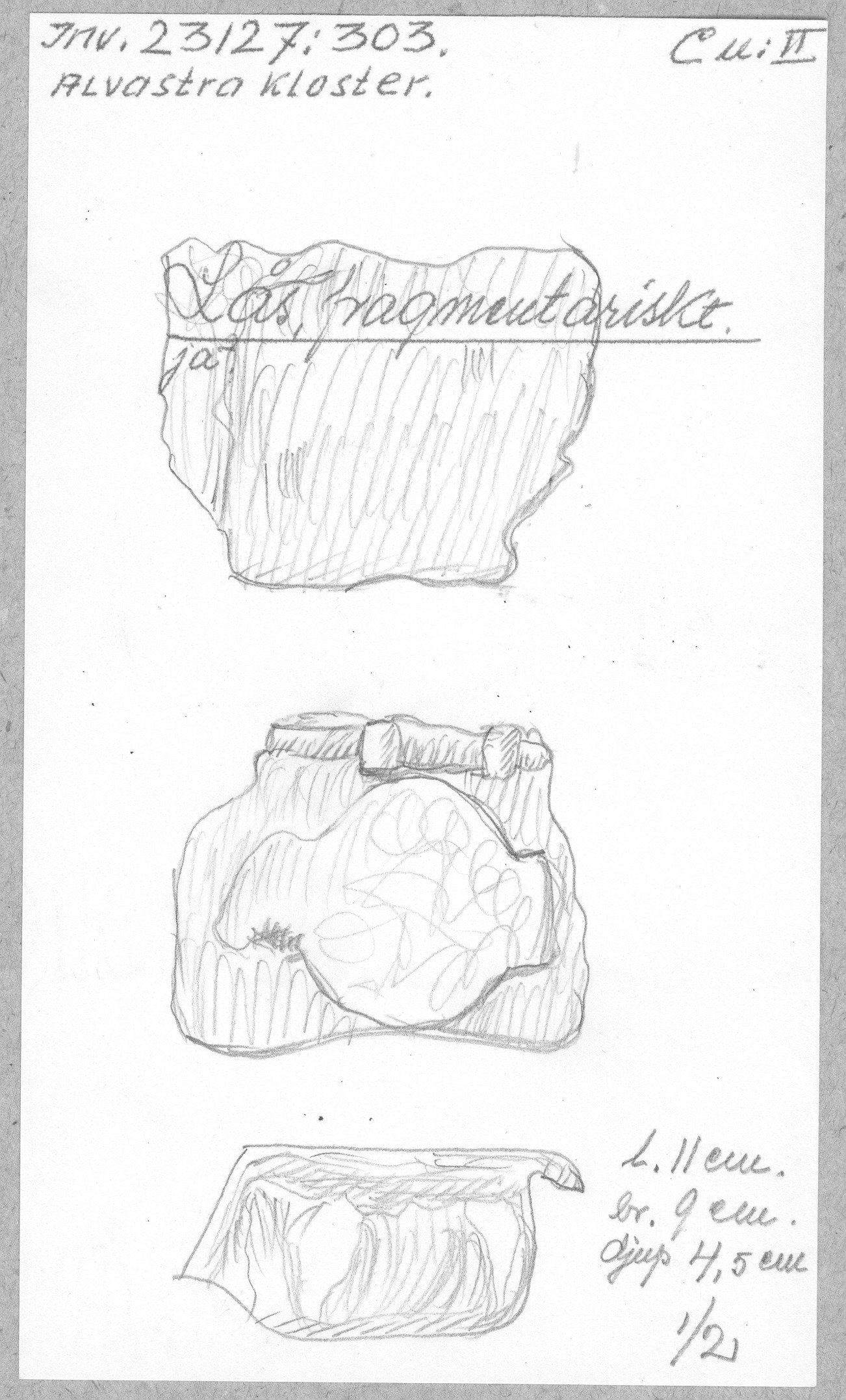 Ög, Västra Tollstad, Alvastra kloster. Lås, fragmentariskt