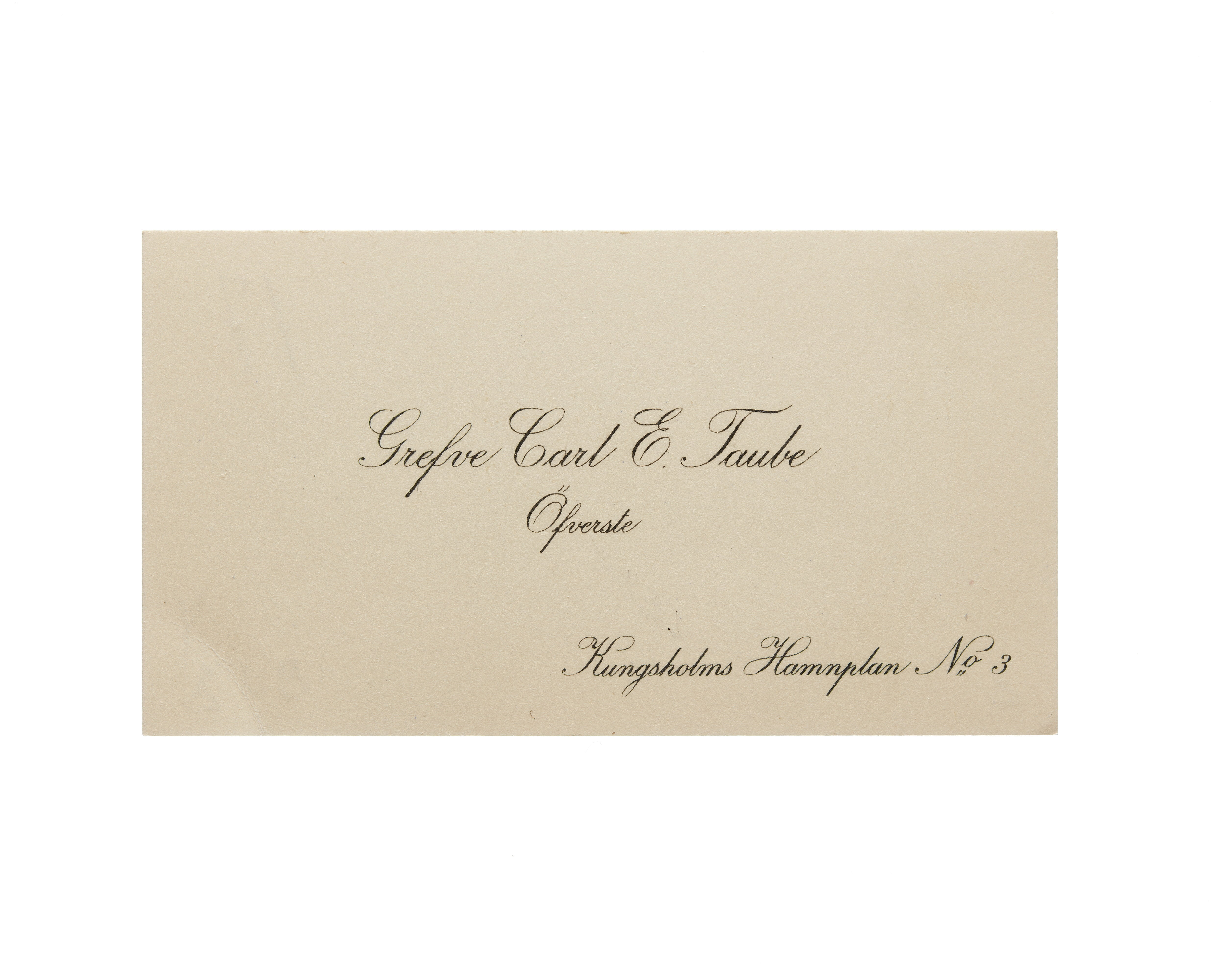 Visitkort från greve Carl E. Taube, Överste