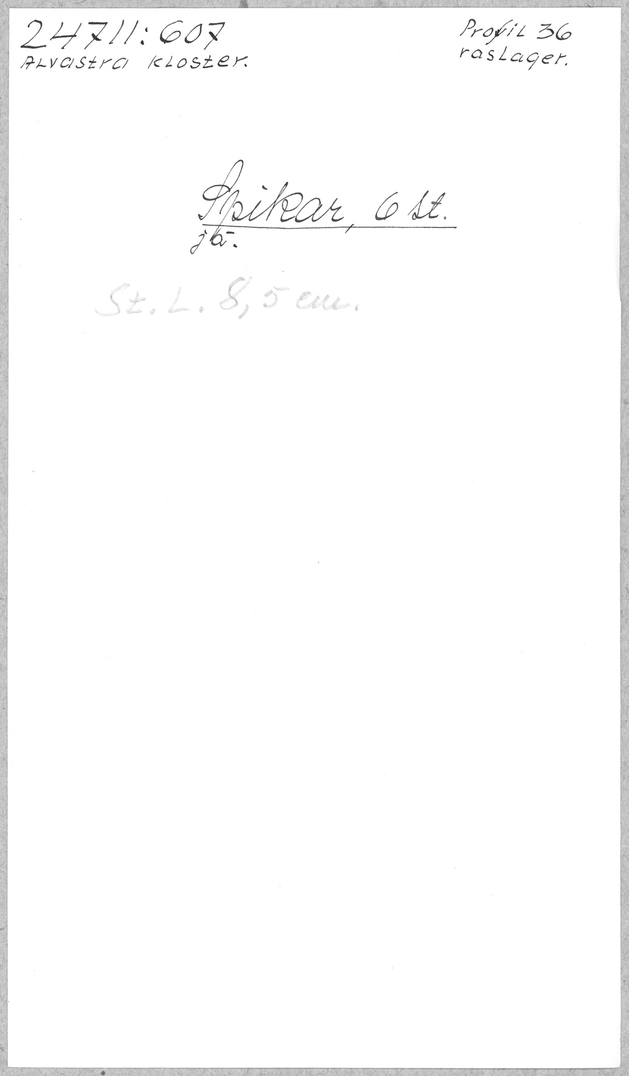 Ög, Västra Tollstad, Alvastra kloster. Spikar, 6 st