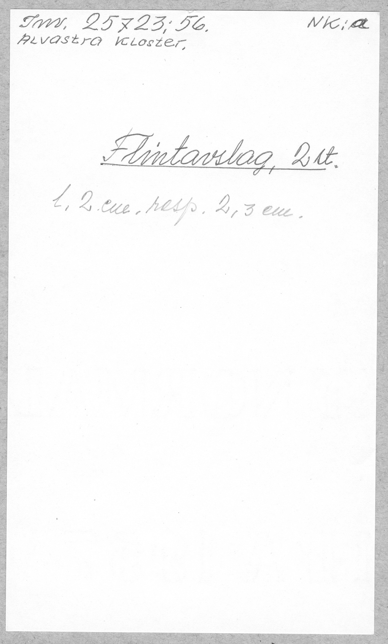 Ög, Västra Tollstad, Alvastra kloster. Flintavslag, 2 st
