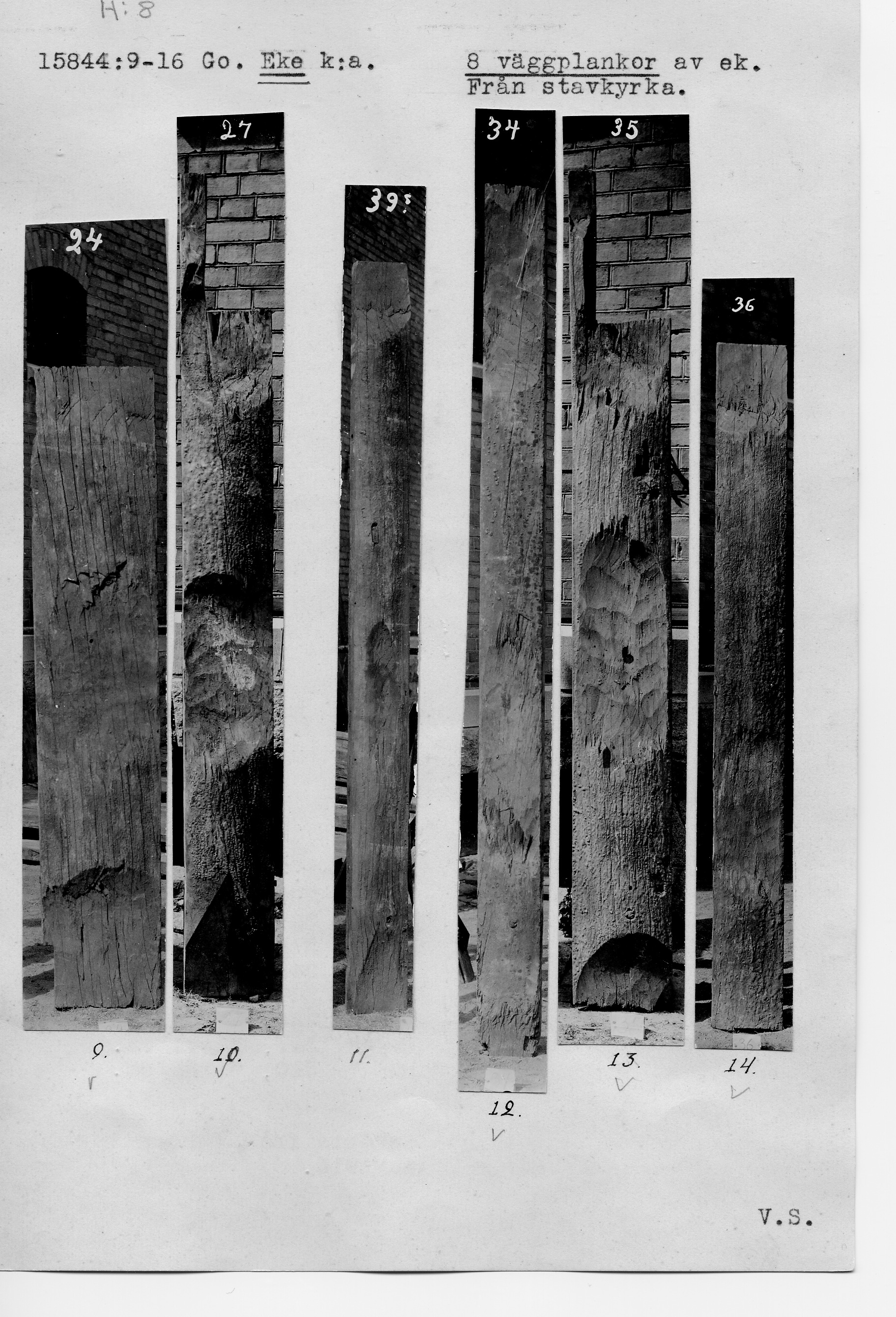 15844:9-16 \ Gotland \ Eke k:a. Go. \ 8 väggplankor av ek. Från stavkyrka. \ Medeltid