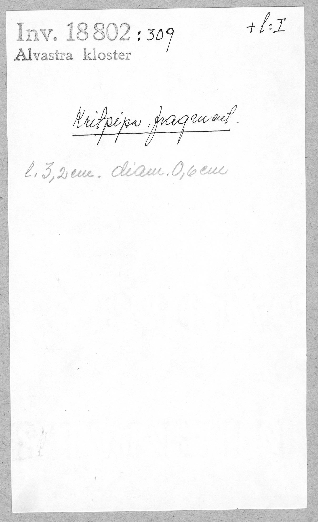 Ög, Västra Tollstad, Alvastra kloster. Kritpipa, fragment