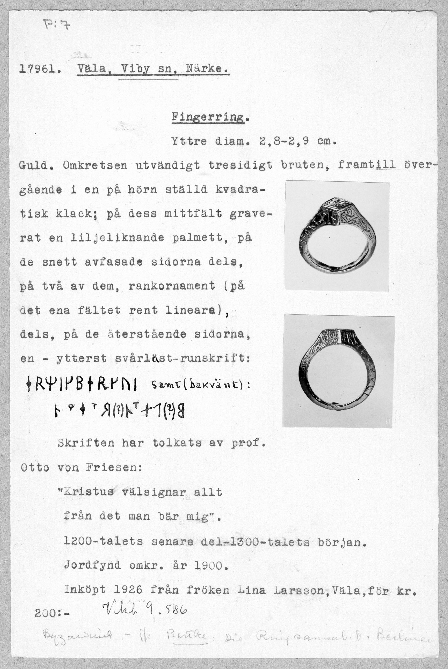 17961: \ Närke \ Väla, Viby sn, Närke. \ Fingerring \ Medeltid