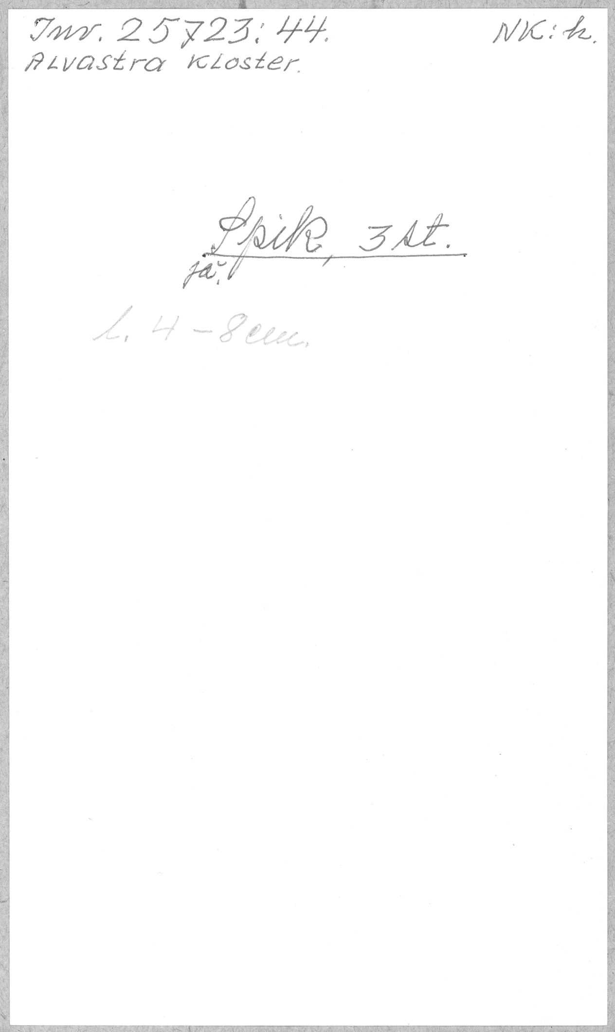 Ög, Västra Tollstad, Alvastra kloster. Spik, 3 st
