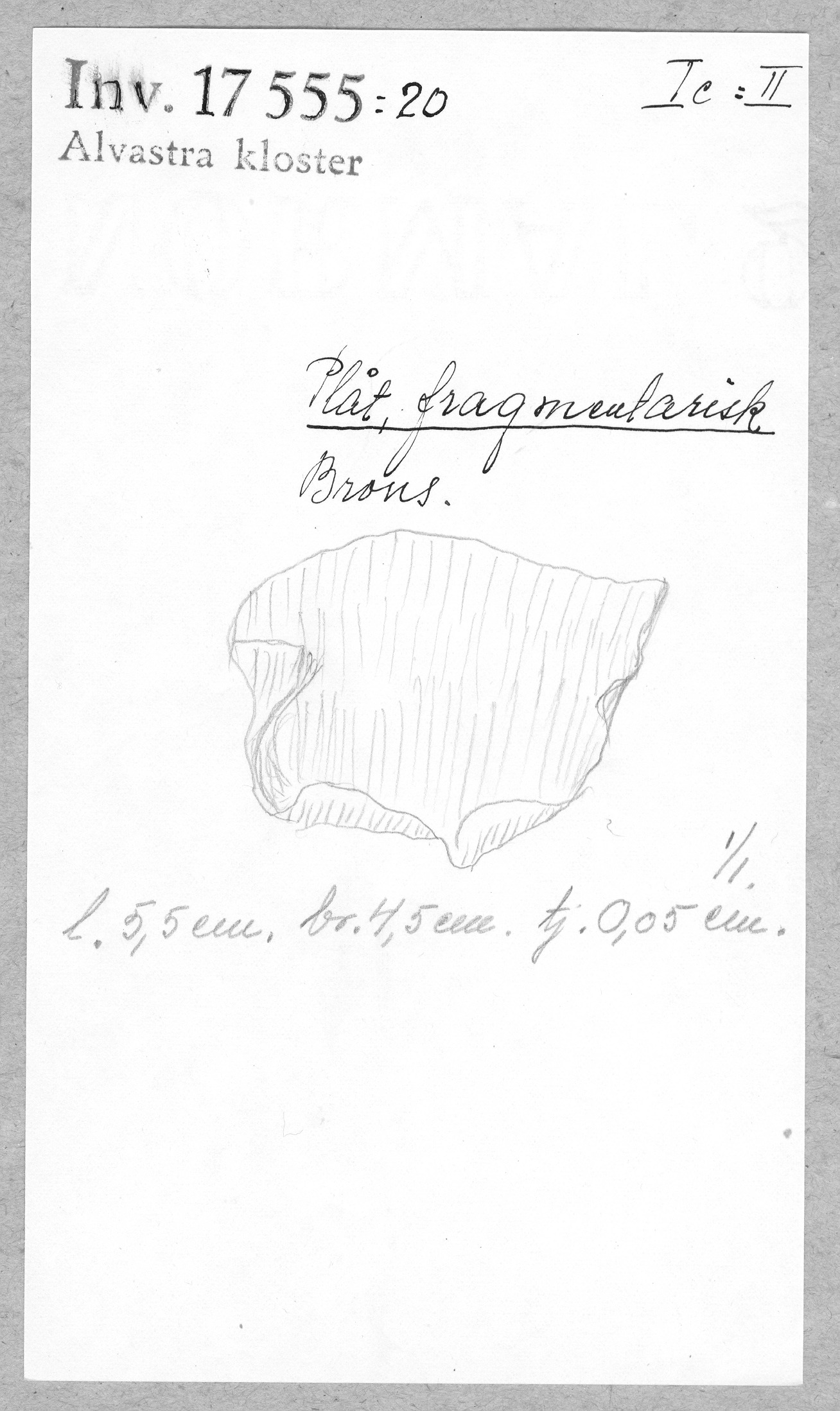 Ög, Västra Tollstad, Alvastra kloster. Plåt, fragmentarisk