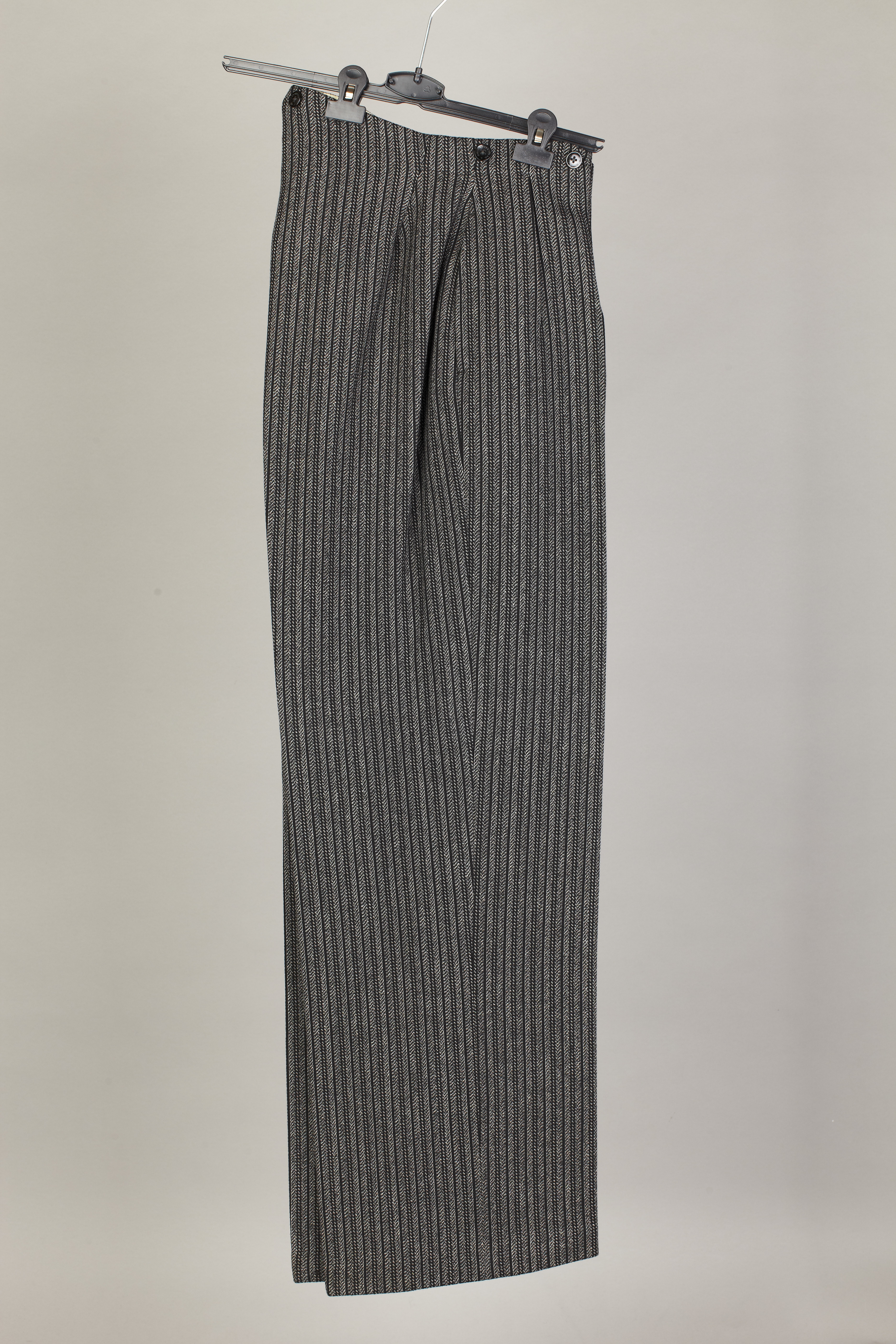 Byxor med ränder och fiskbensmönstrade band från 1936.