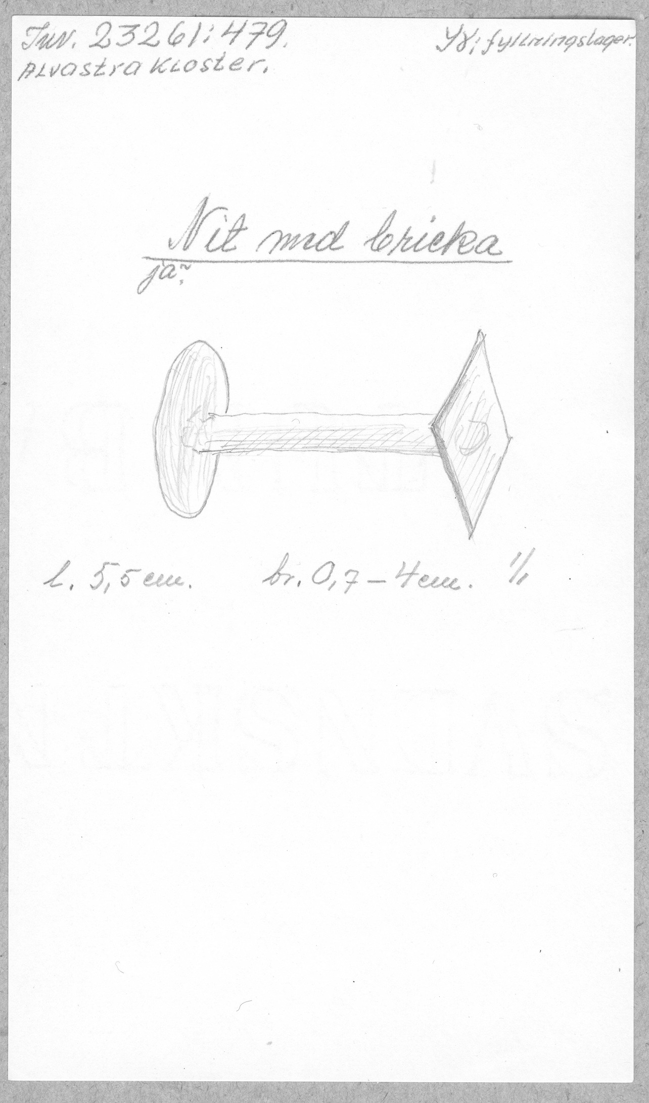 Ög, Västra Tollstad, Alvastra kloster. Nit med bricka