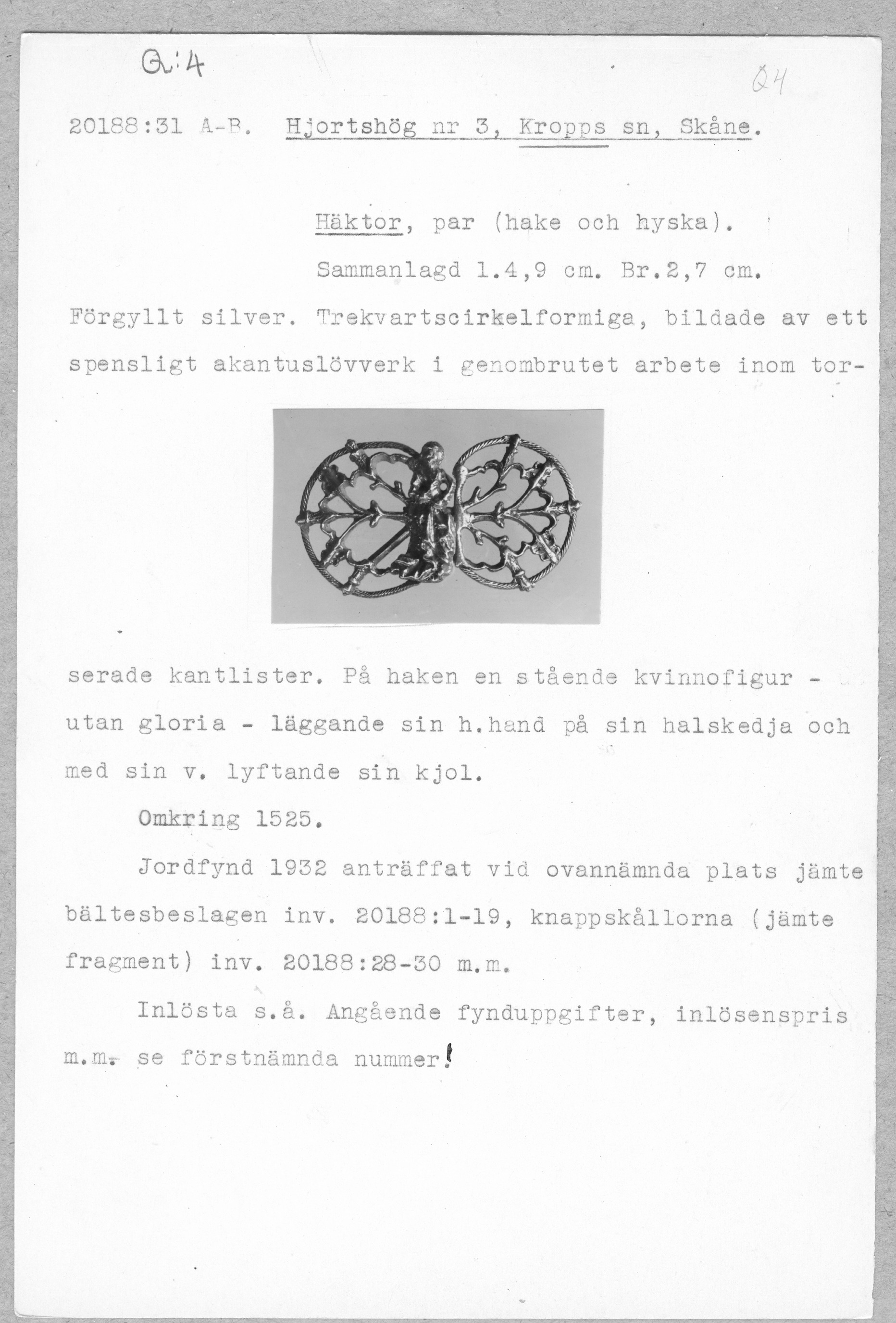 20188:31 A-B \ Östergötland \ Hjortshög nr 3, Kropps sn, Skåne. \ Häktor \ Medeltid