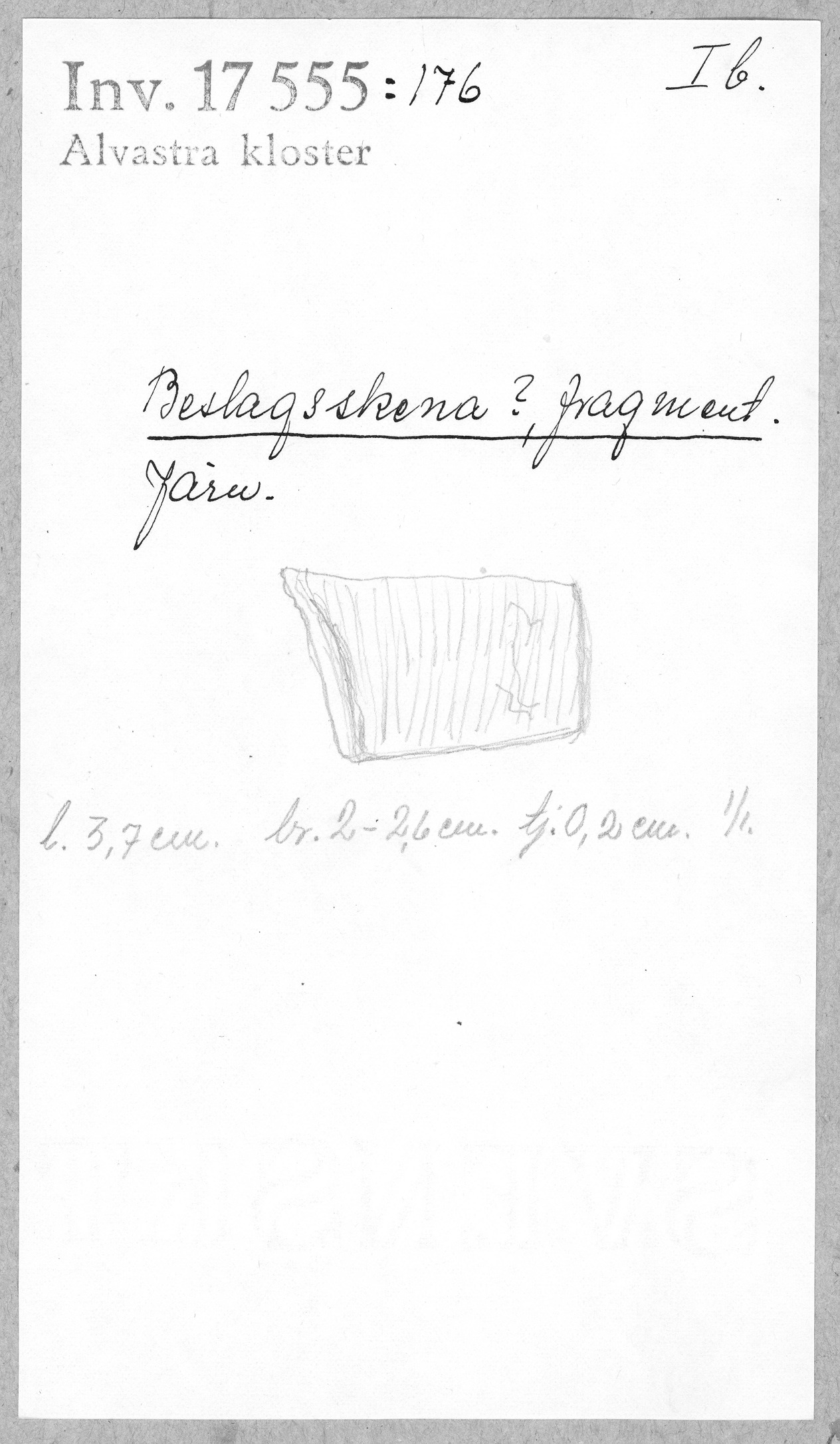 Ög, Västra Tollstad, Alvastra kloster. Beslagsskena? fragment