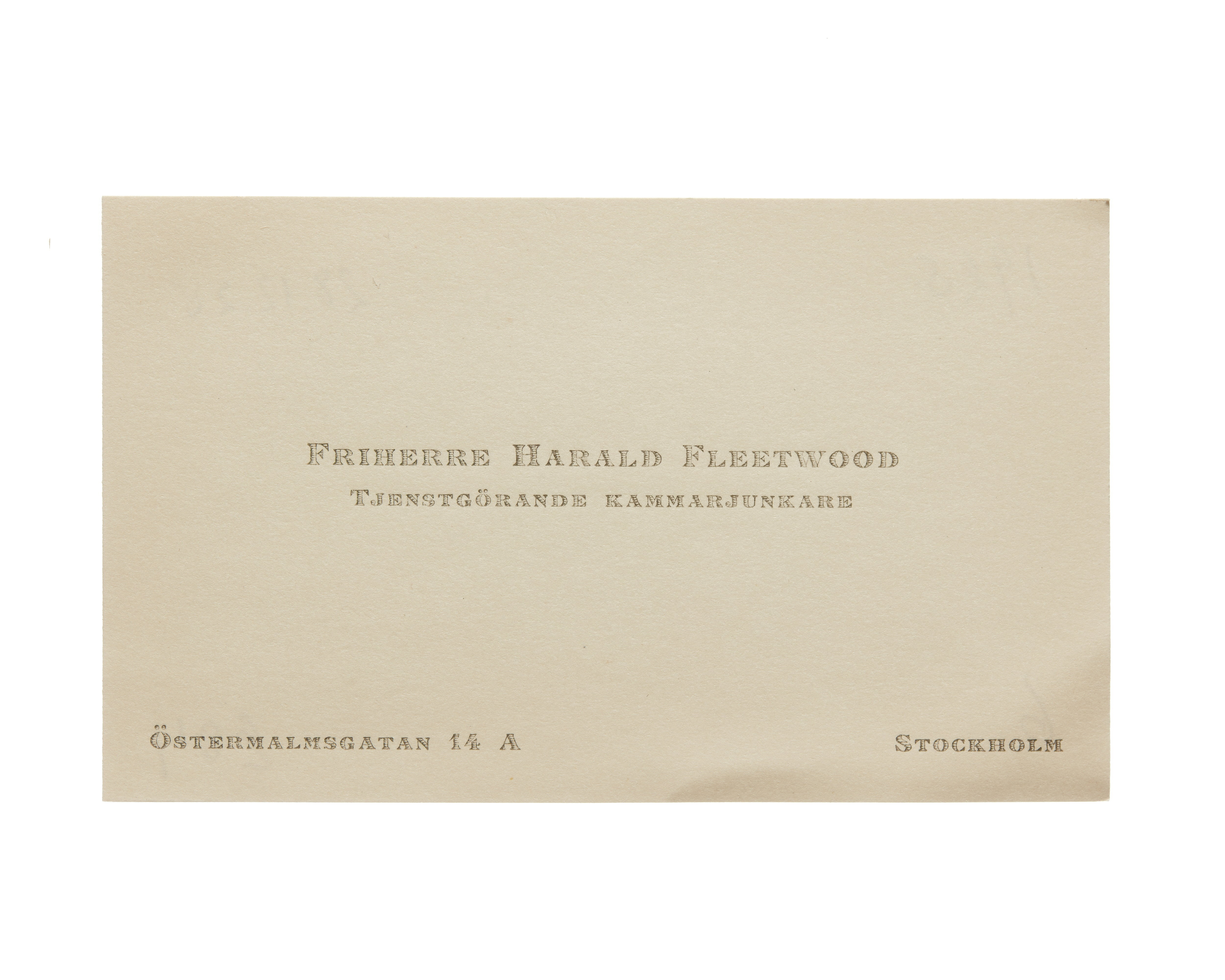 Visitkort från Friherre Harald Fleetwood.