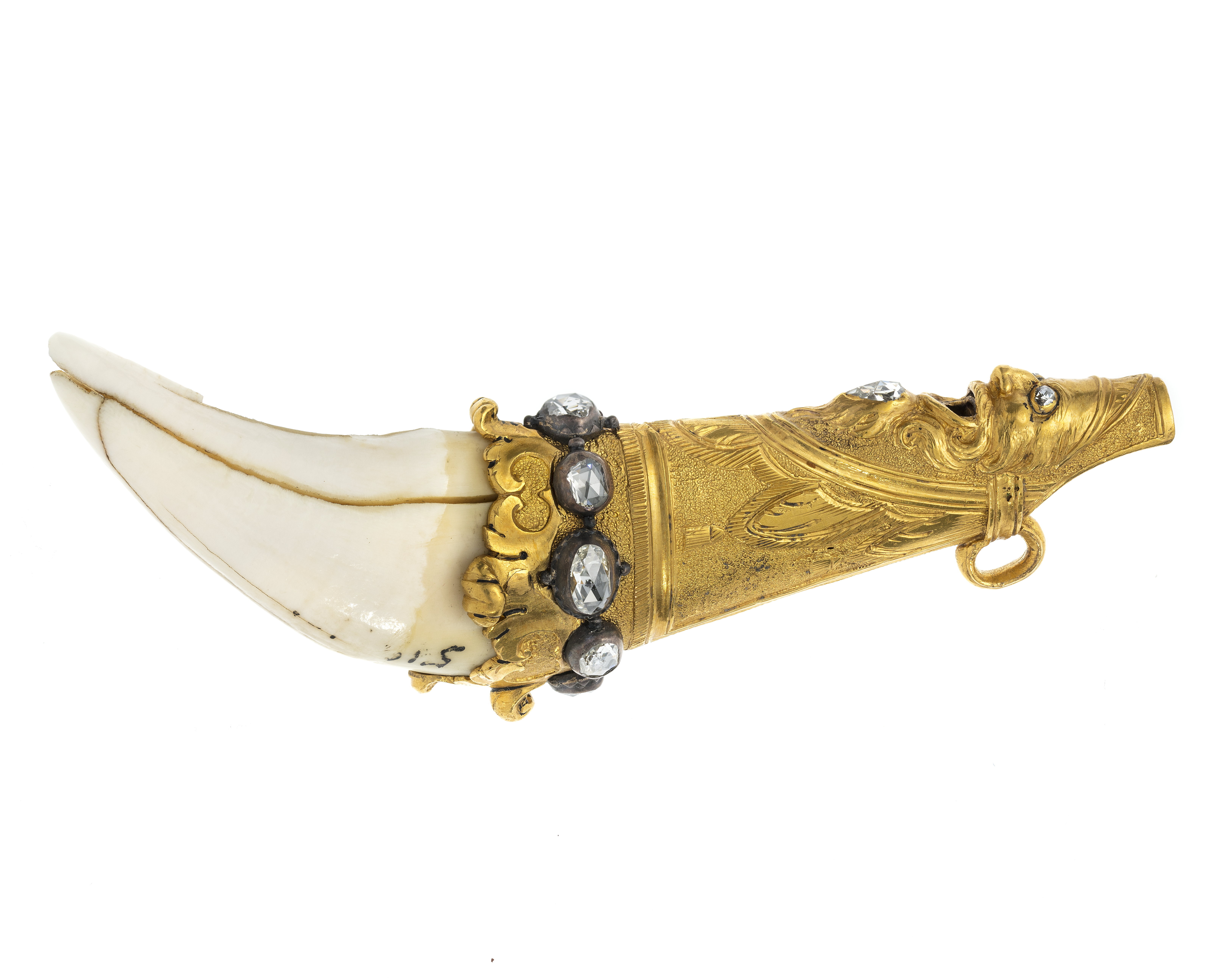 Visselpipa med vargtand och rosenstenar, 1600-talets slut.