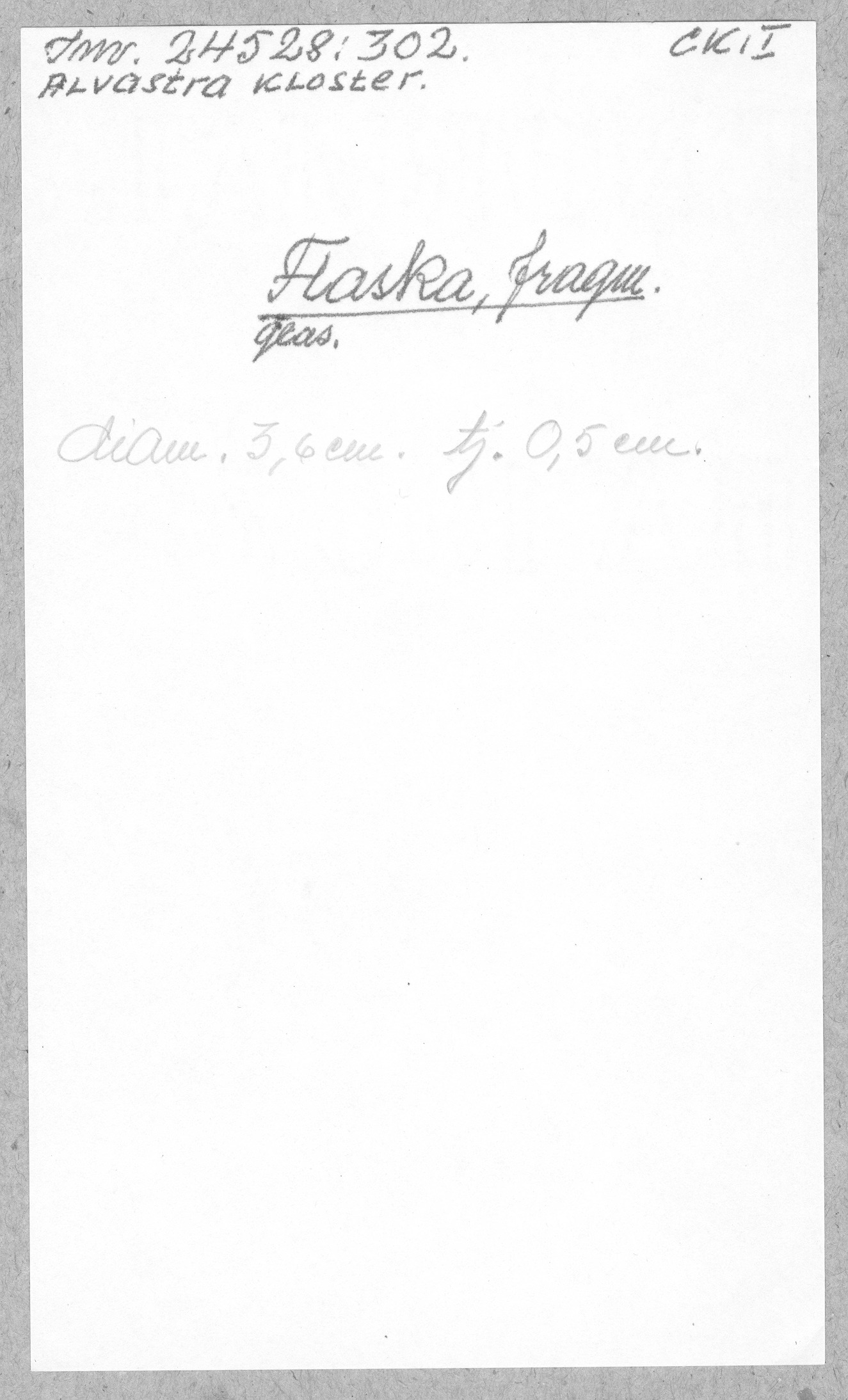 Ög, Västra Tollstad, Alvastra kloster. Flaska, fragm