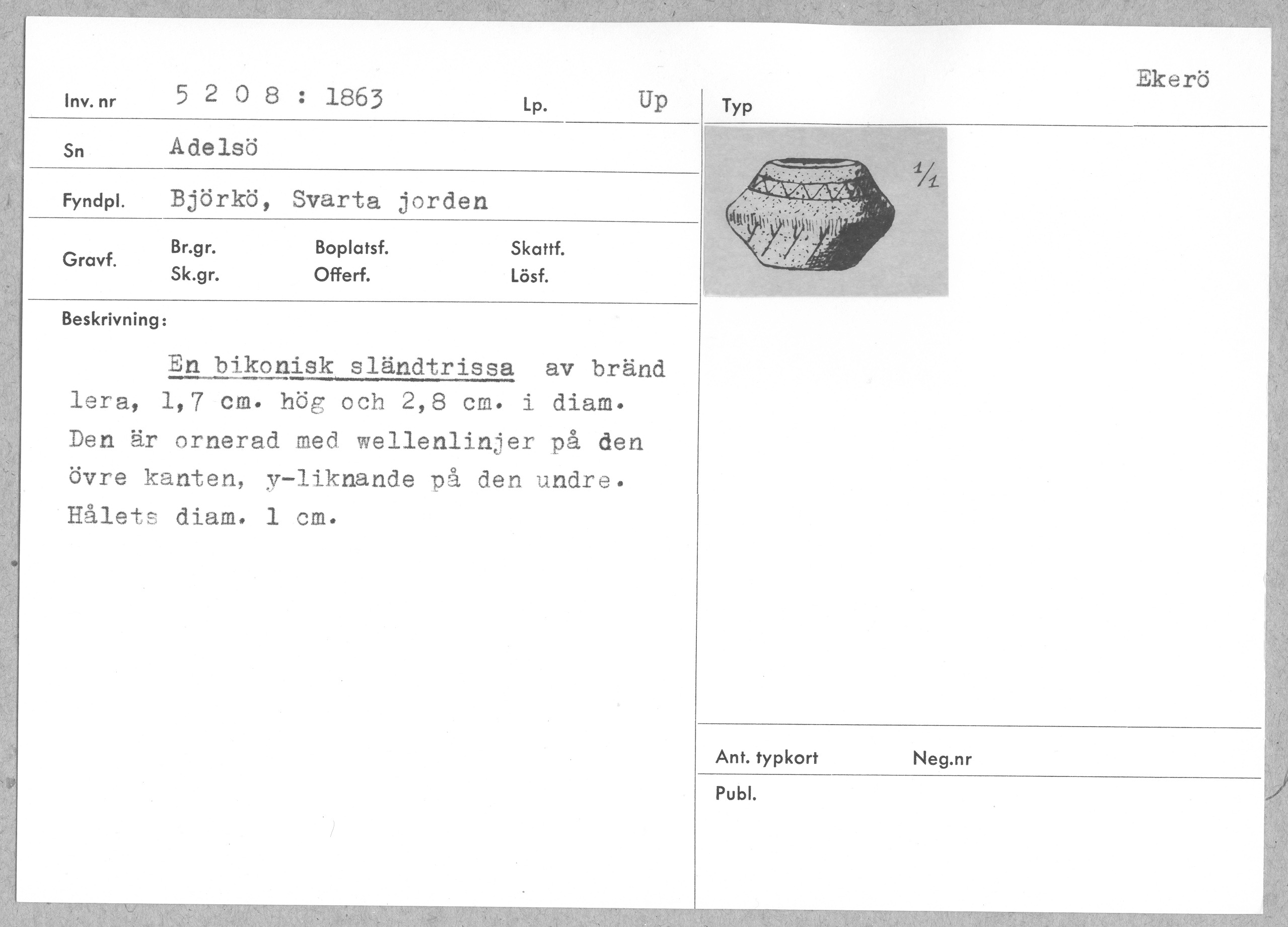 SHM5208:1863, Birka, Svarta jorden. En bikonisk sländtrissa
