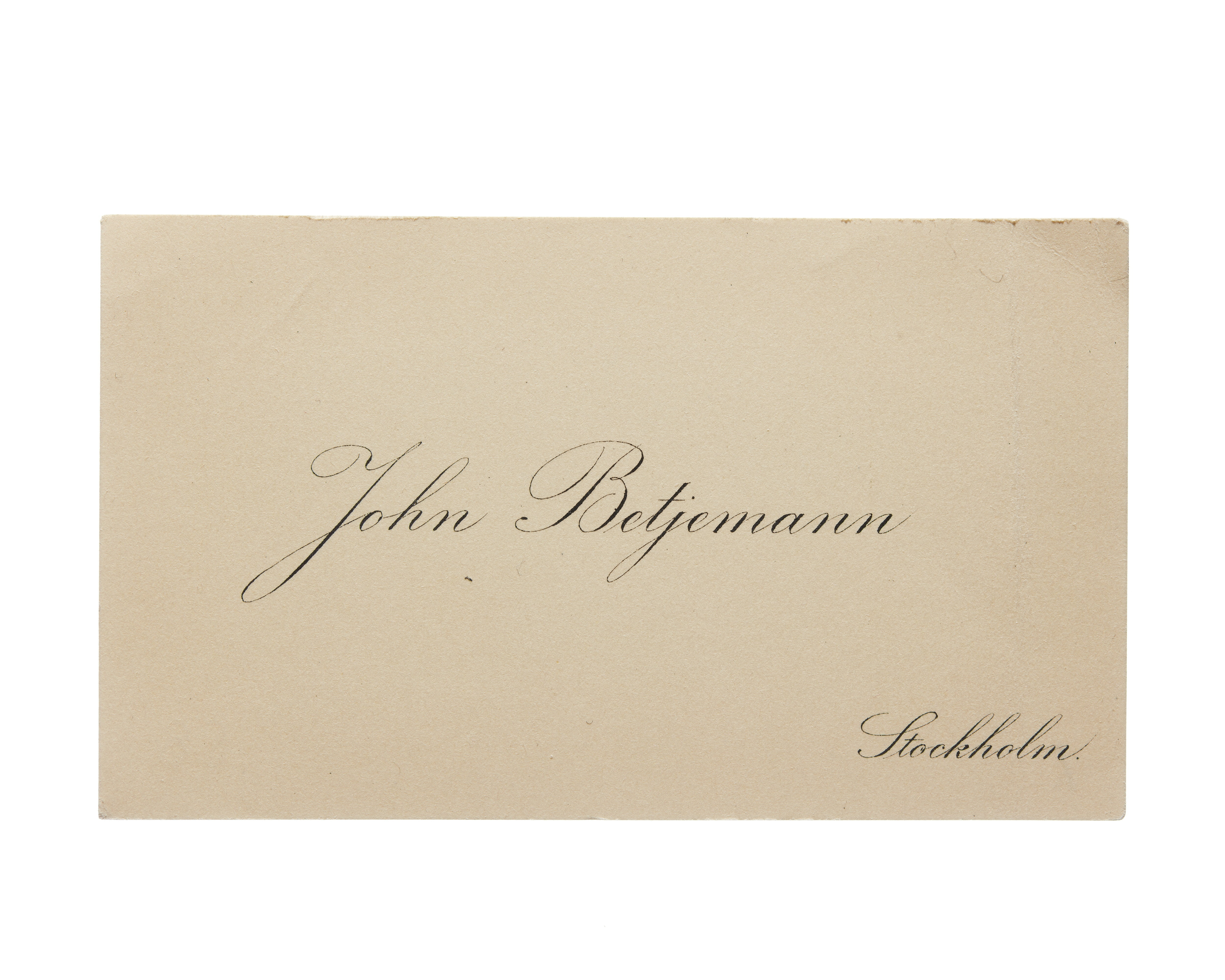 Visitkort från prokurist John Betjmann.