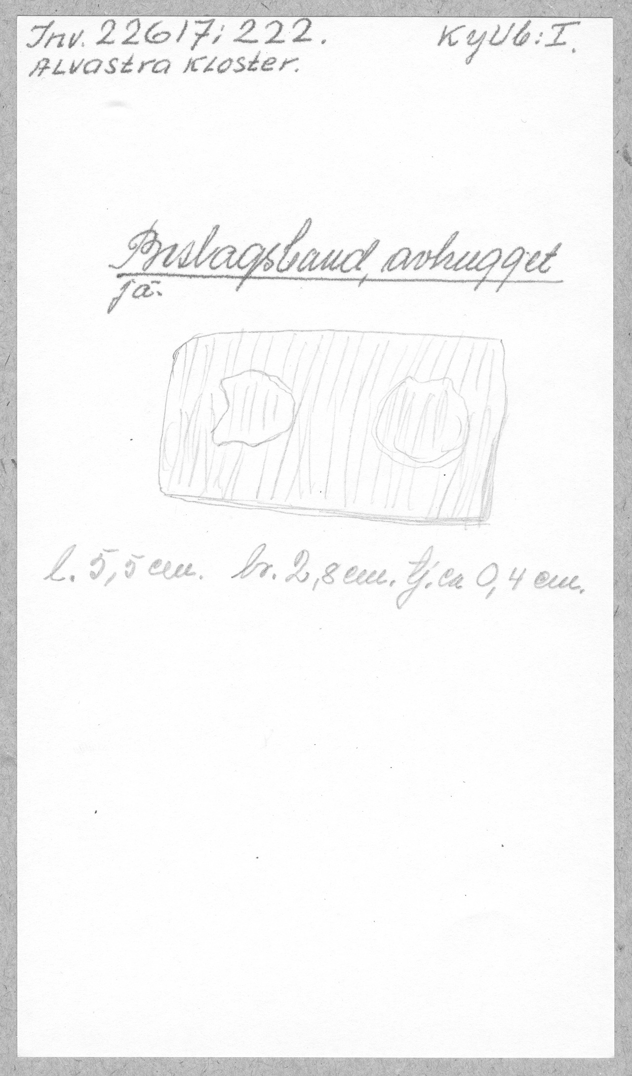 Ög, Västra Tollstad, Alvastra kloster. Beslagsband, avhugget