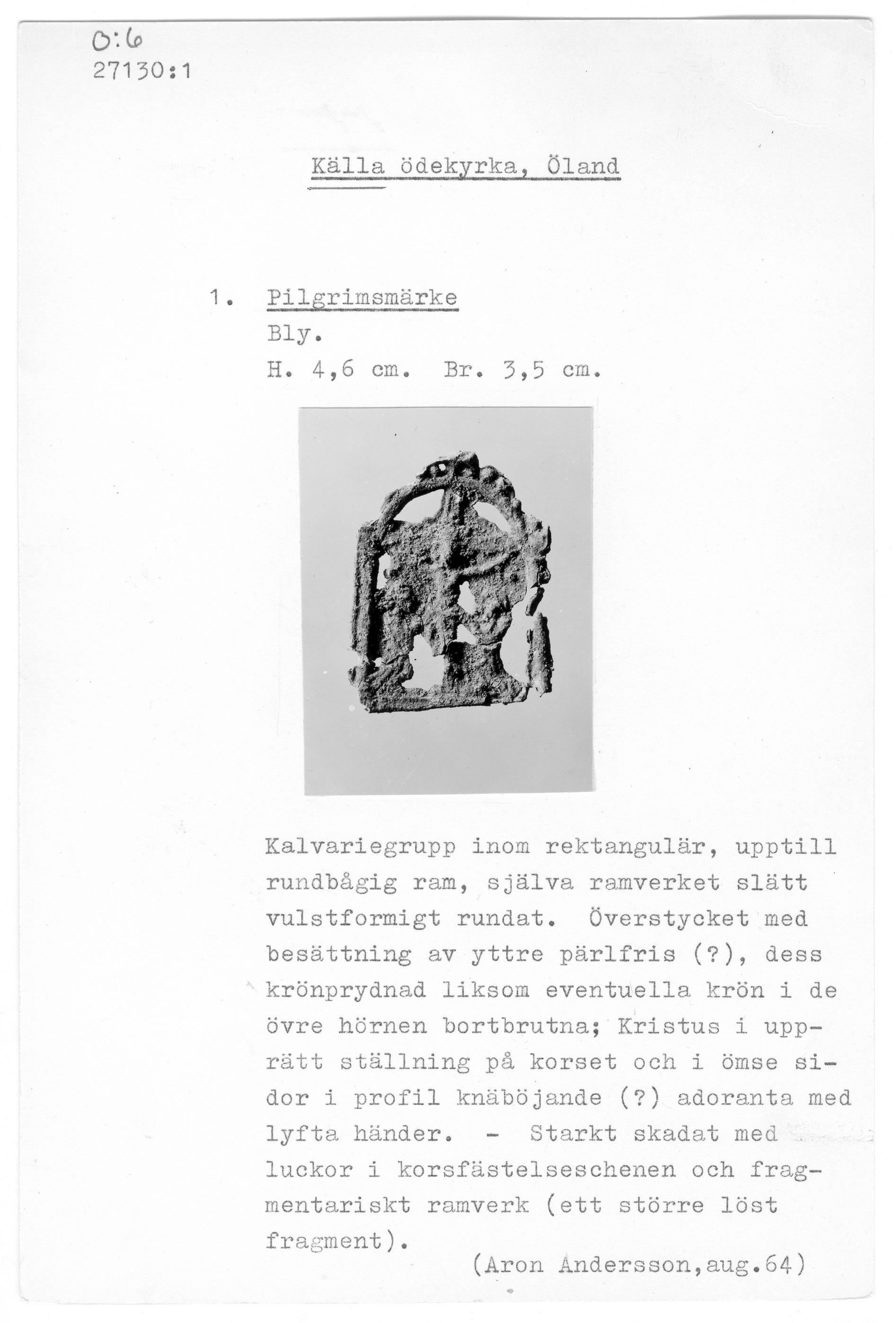 27130:1 \ Öland \ Källa ödekyrka, Öland \ Pilgrimsmärke \ Medeltid