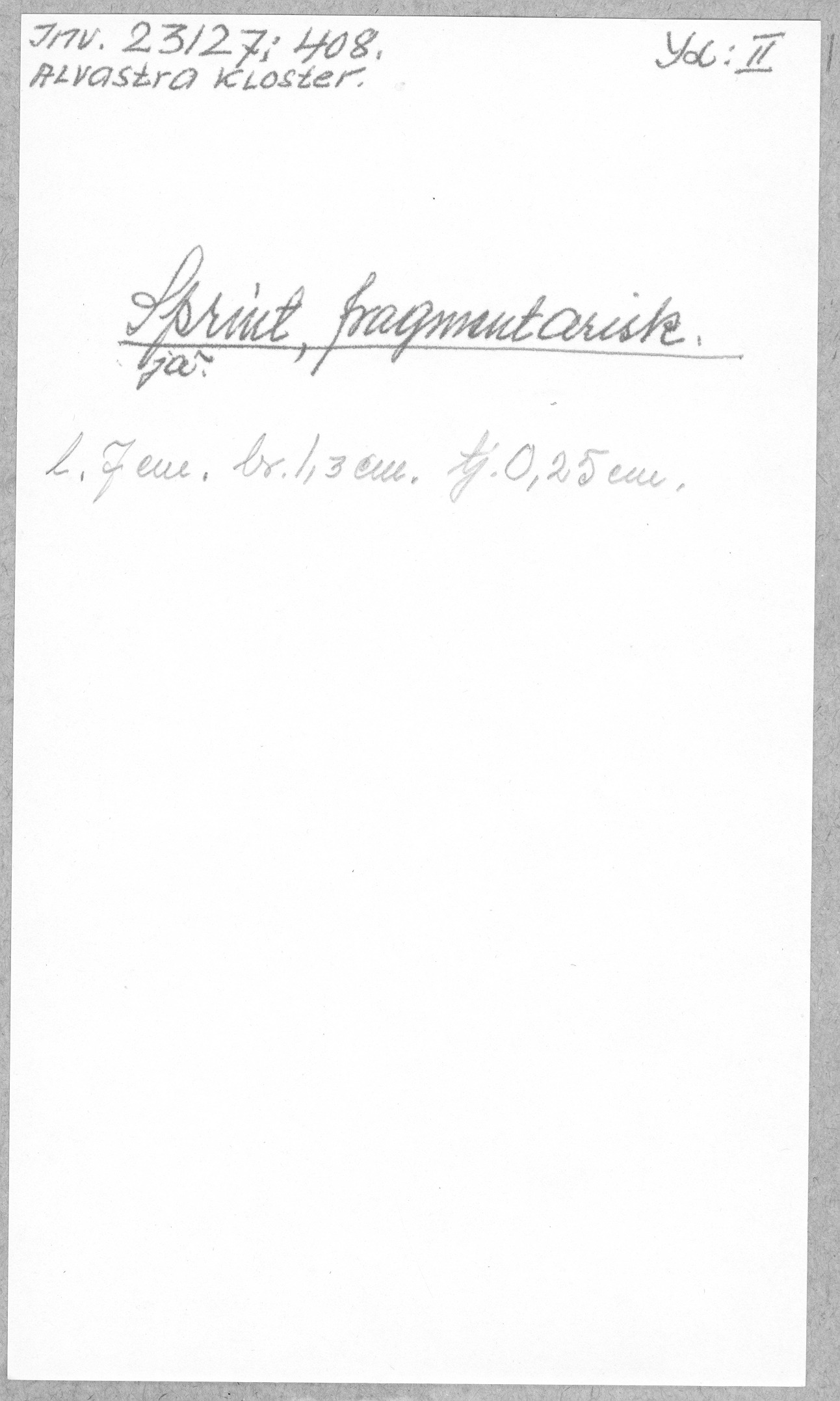 Ög, Västra Tollstad, Alvastra kloster. Sprint, fragmentarisk