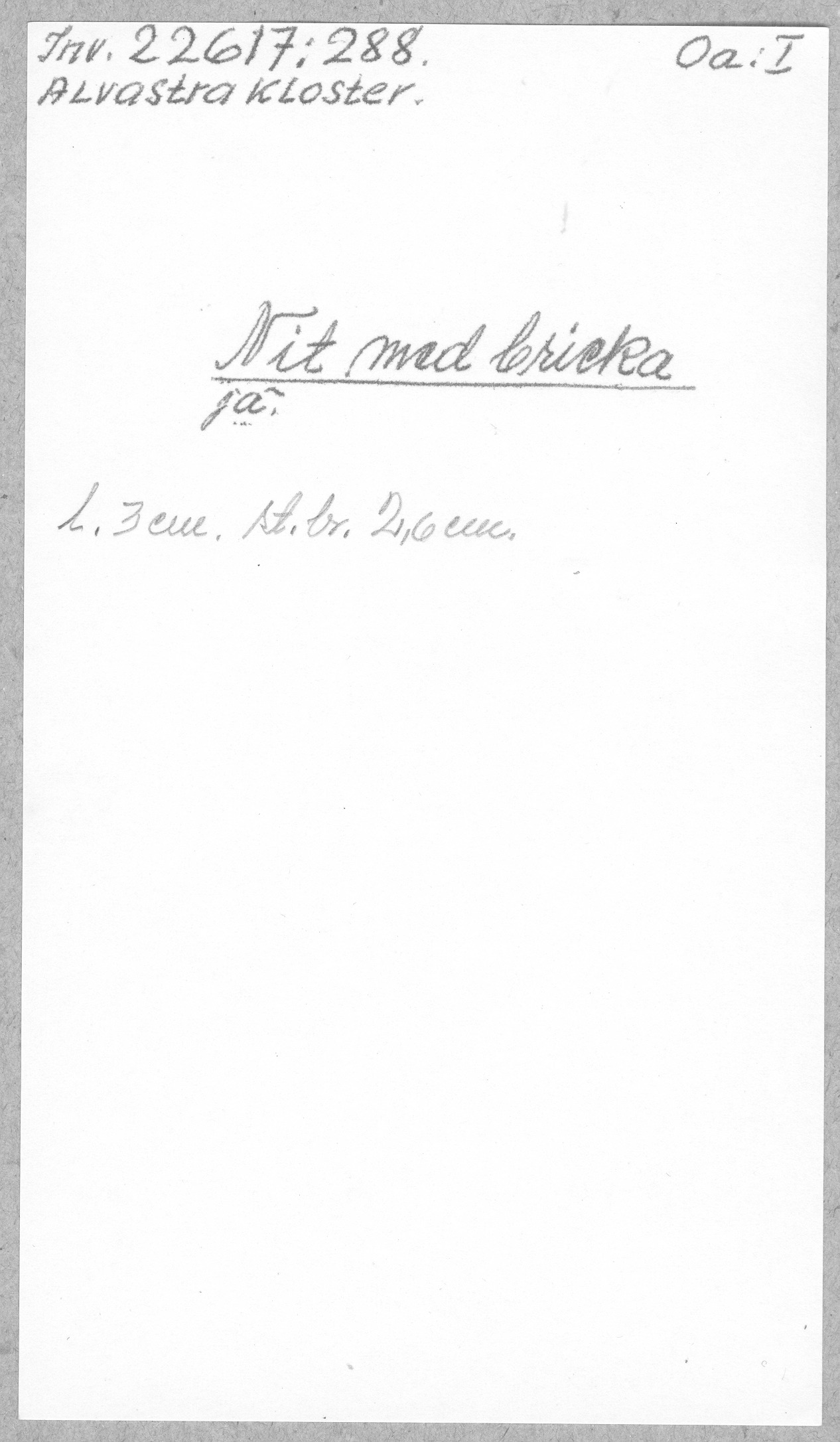 Ög, Västra Tollstad, Alvastra kloster. Nit med bricka