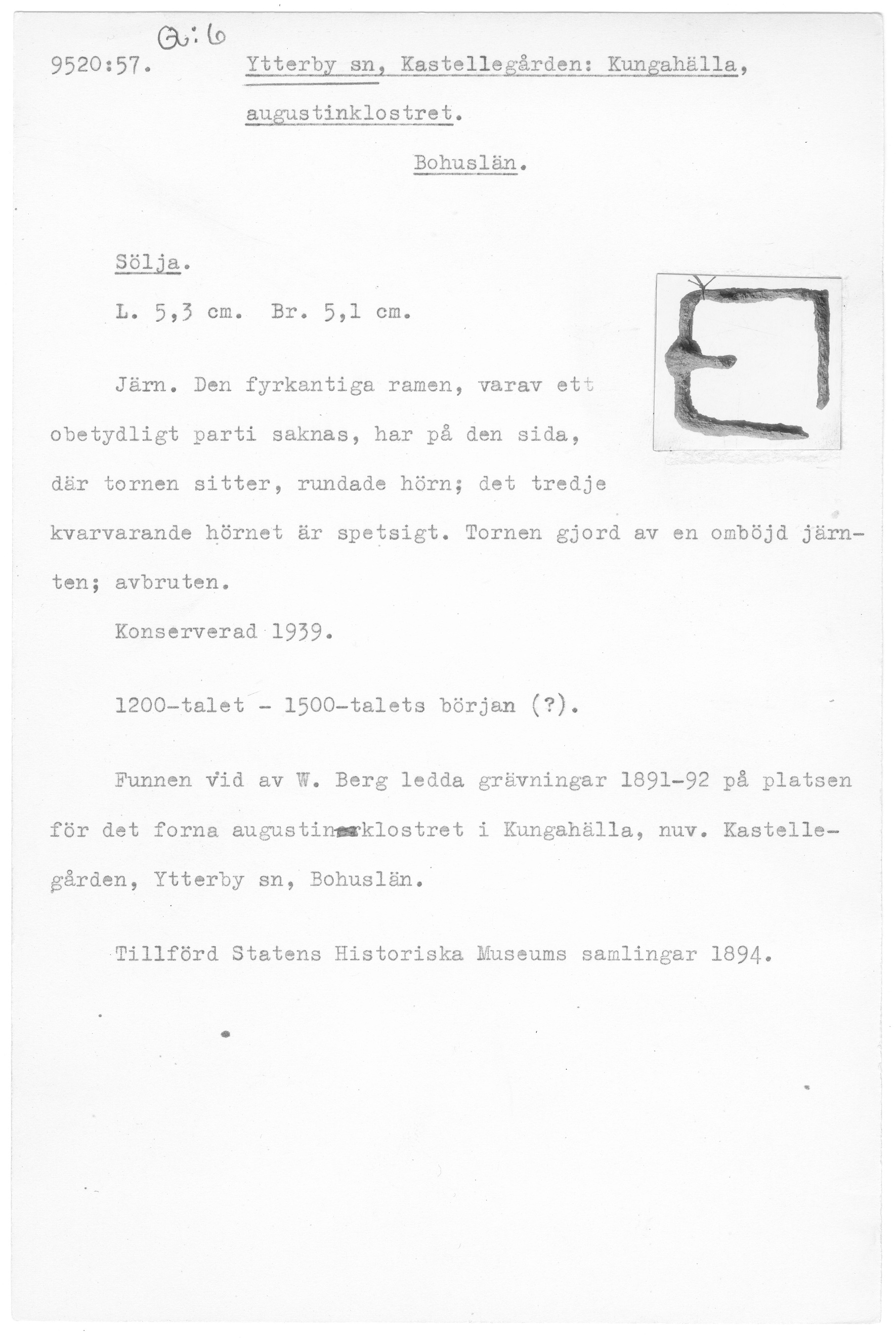 9520:57 \ Bohuslän \ Ytterby sn, Kastellegården: Kungahälla, augustinklostret. Bohuslän. \ Sölja \ Medeltid
