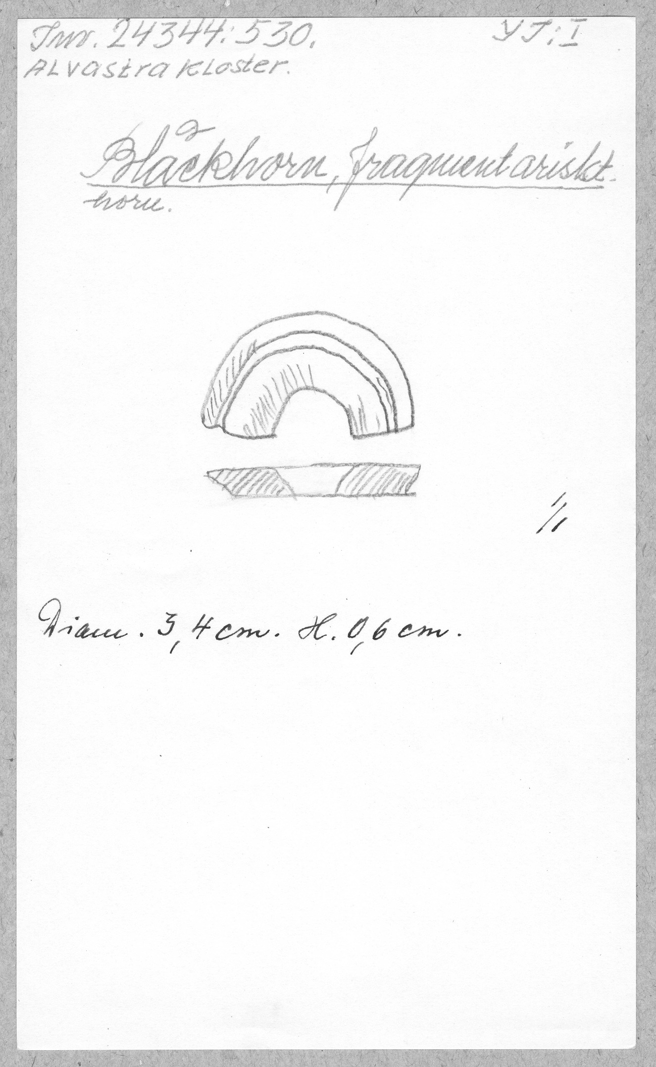 Ög, Västra Tollstad, Alvastra kloster. Bläckhorn, fragmentariskt horn