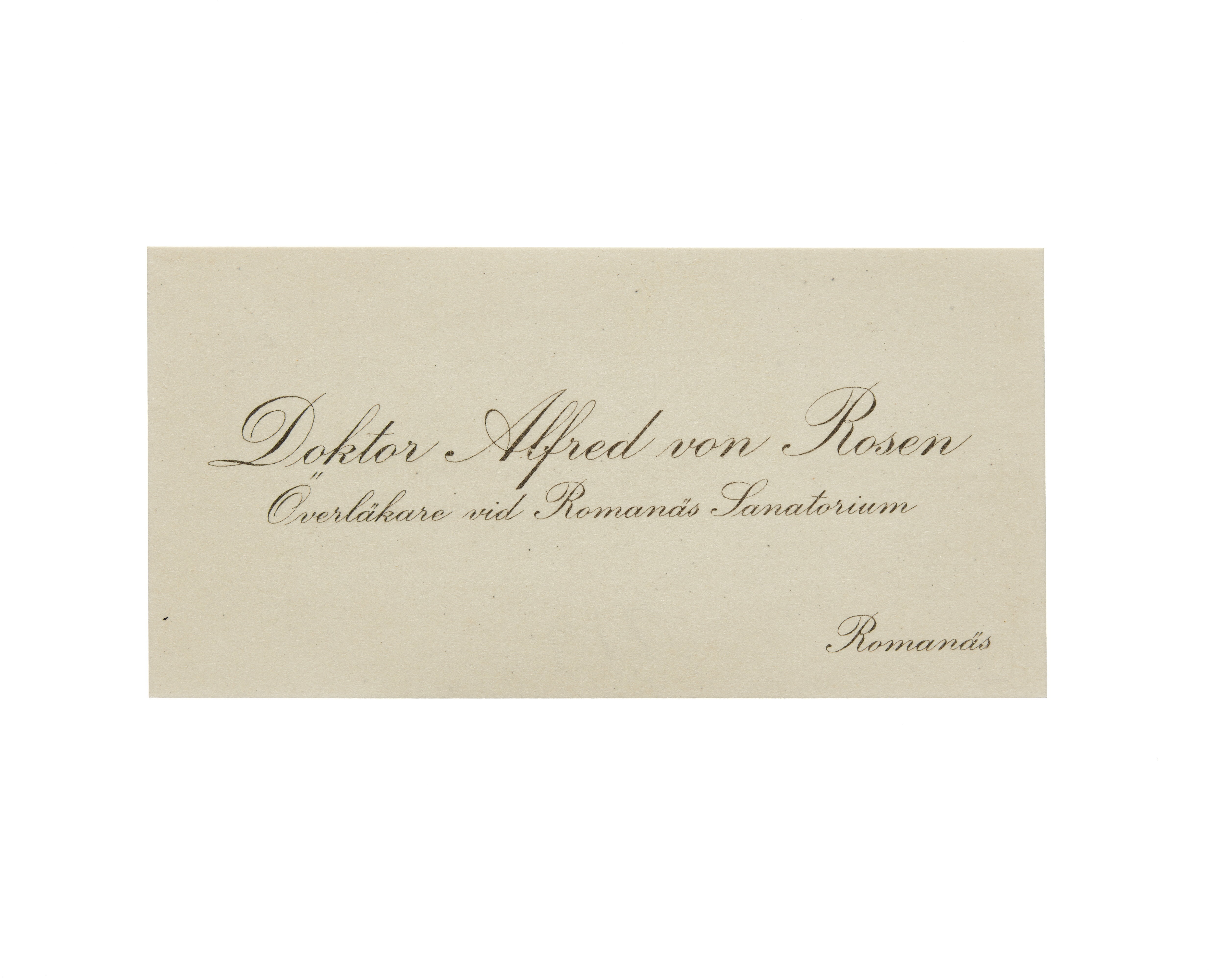 Visitkort från Doktor Alfred von Rosen, Överläkare vid Romanäs Sanatorium.