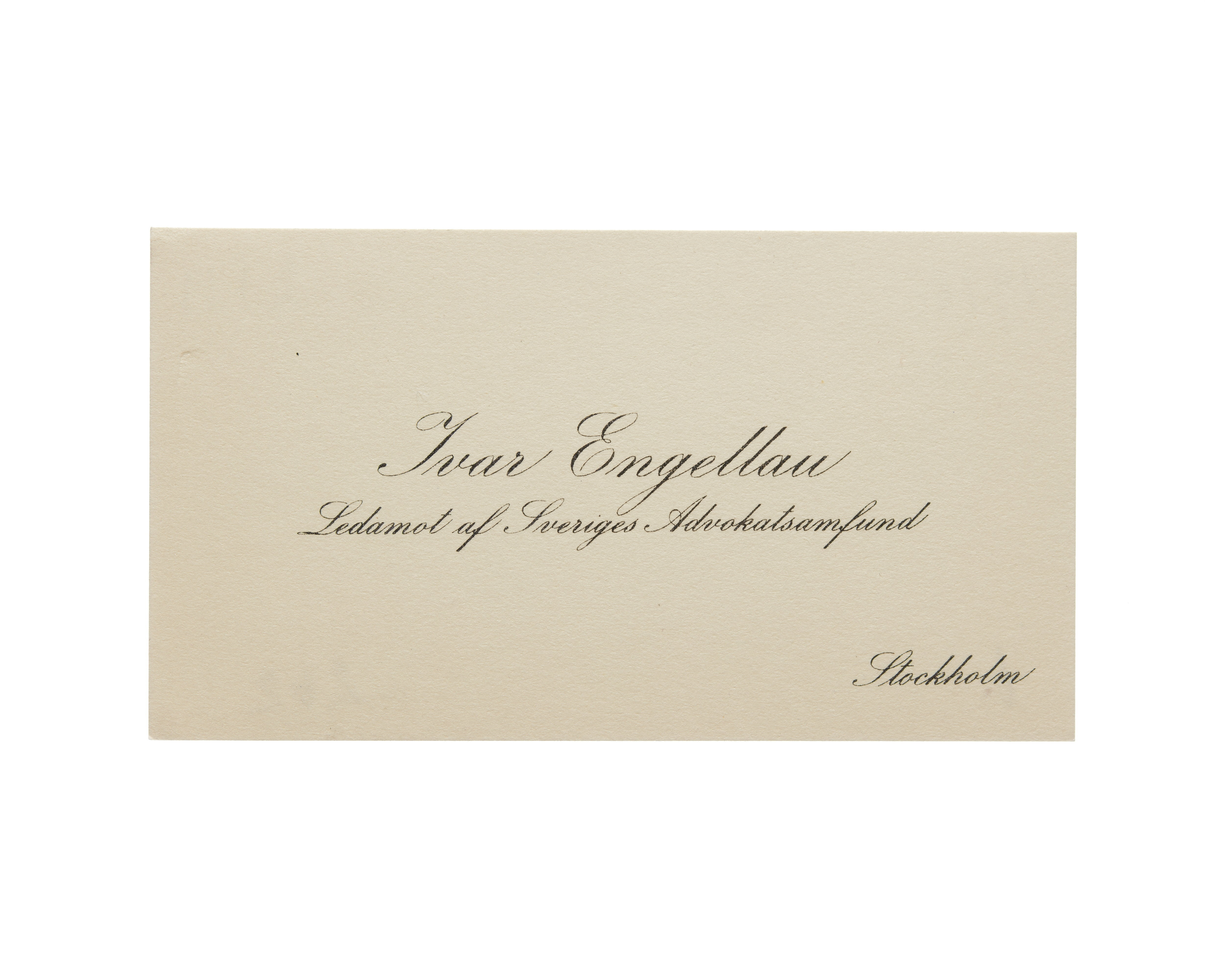 Visitkort från Ivar Engellau, Ledamot av Sveriges Advokatsamfund, 1918.