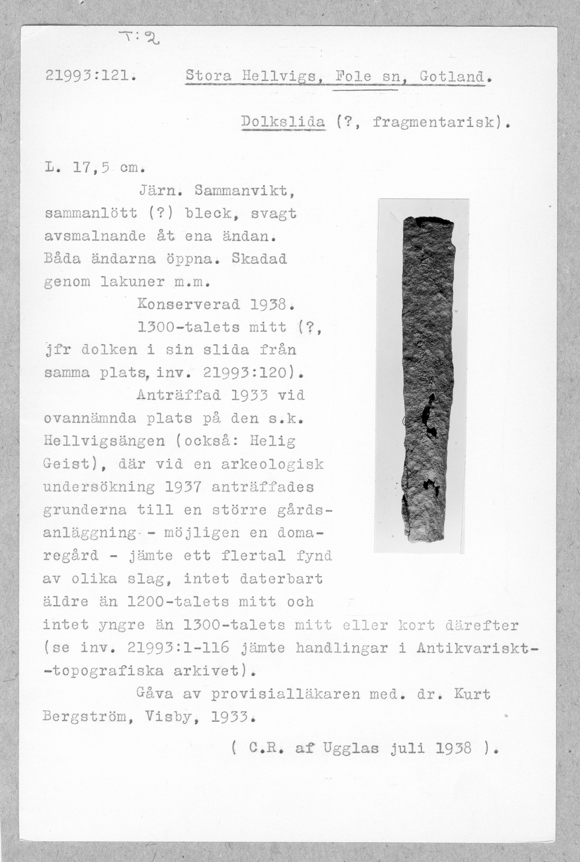 21993:121 \ Gotland \ Stora Hellvigs, Fole sn, Gotland. \ Dolkslida \ Medeltid